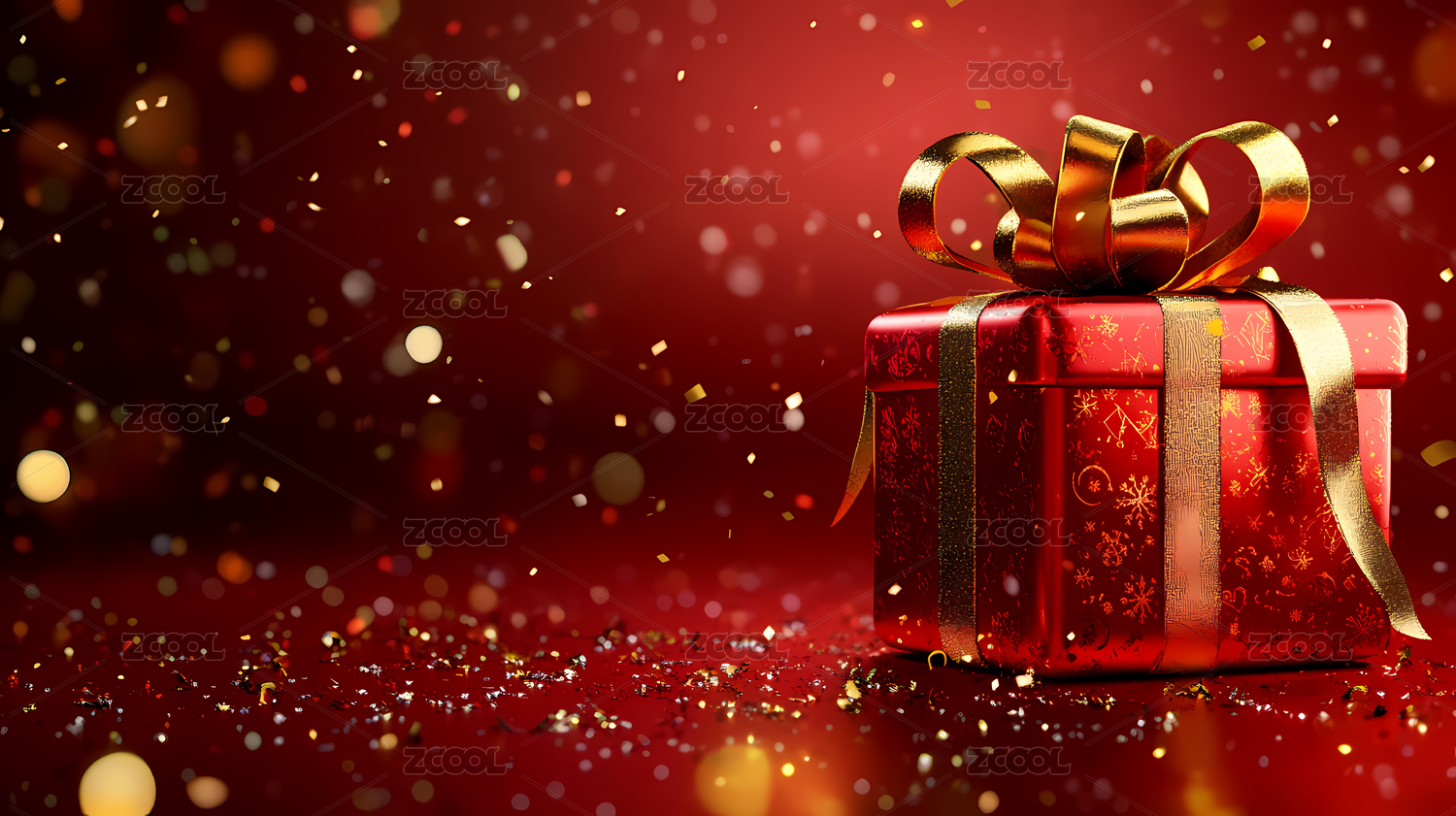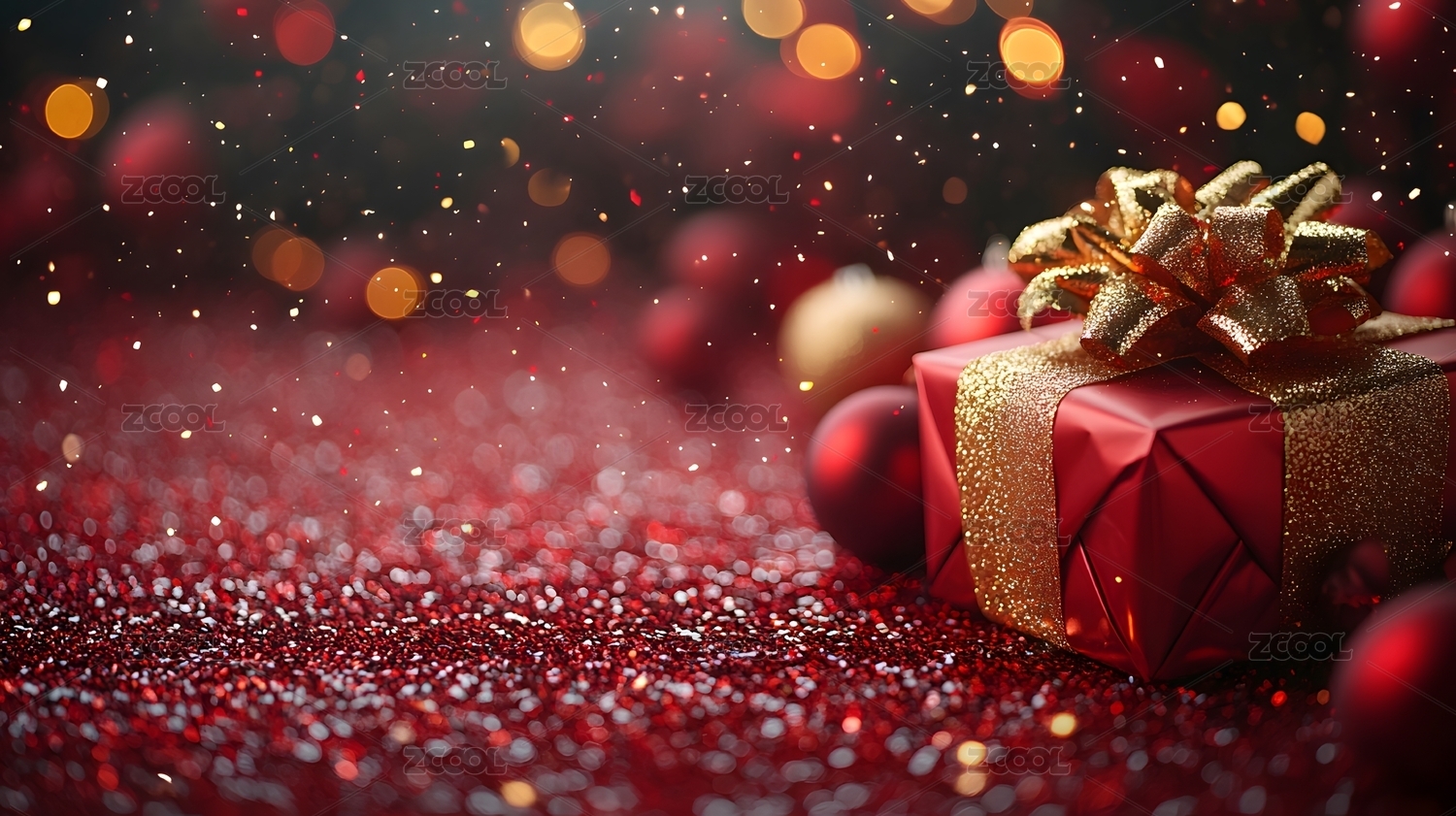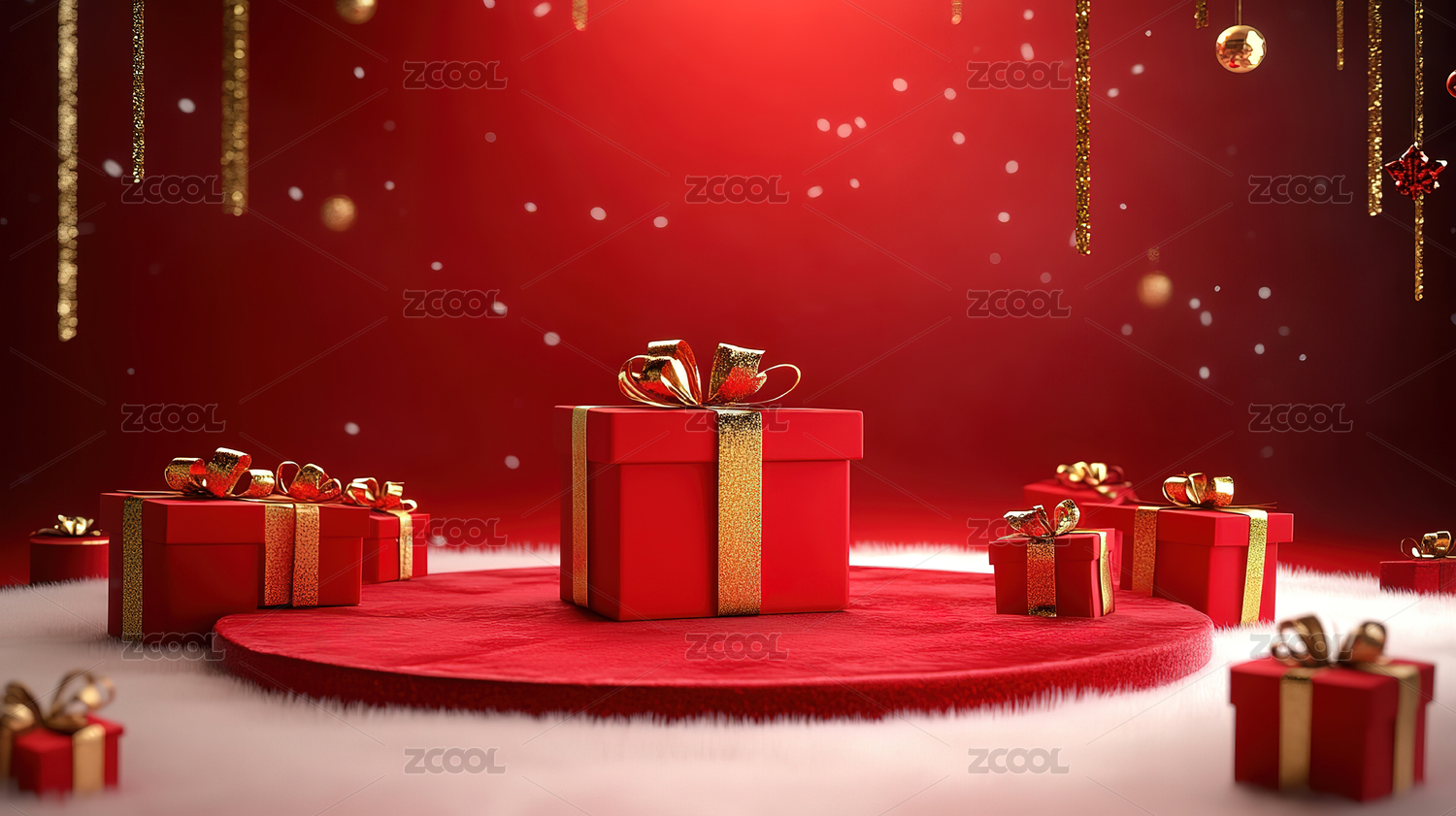 无人,AI数字艺术,圣诞节,圣诞装饰,背景,红色,节日,圣诞树,圣诞礼物,装饰