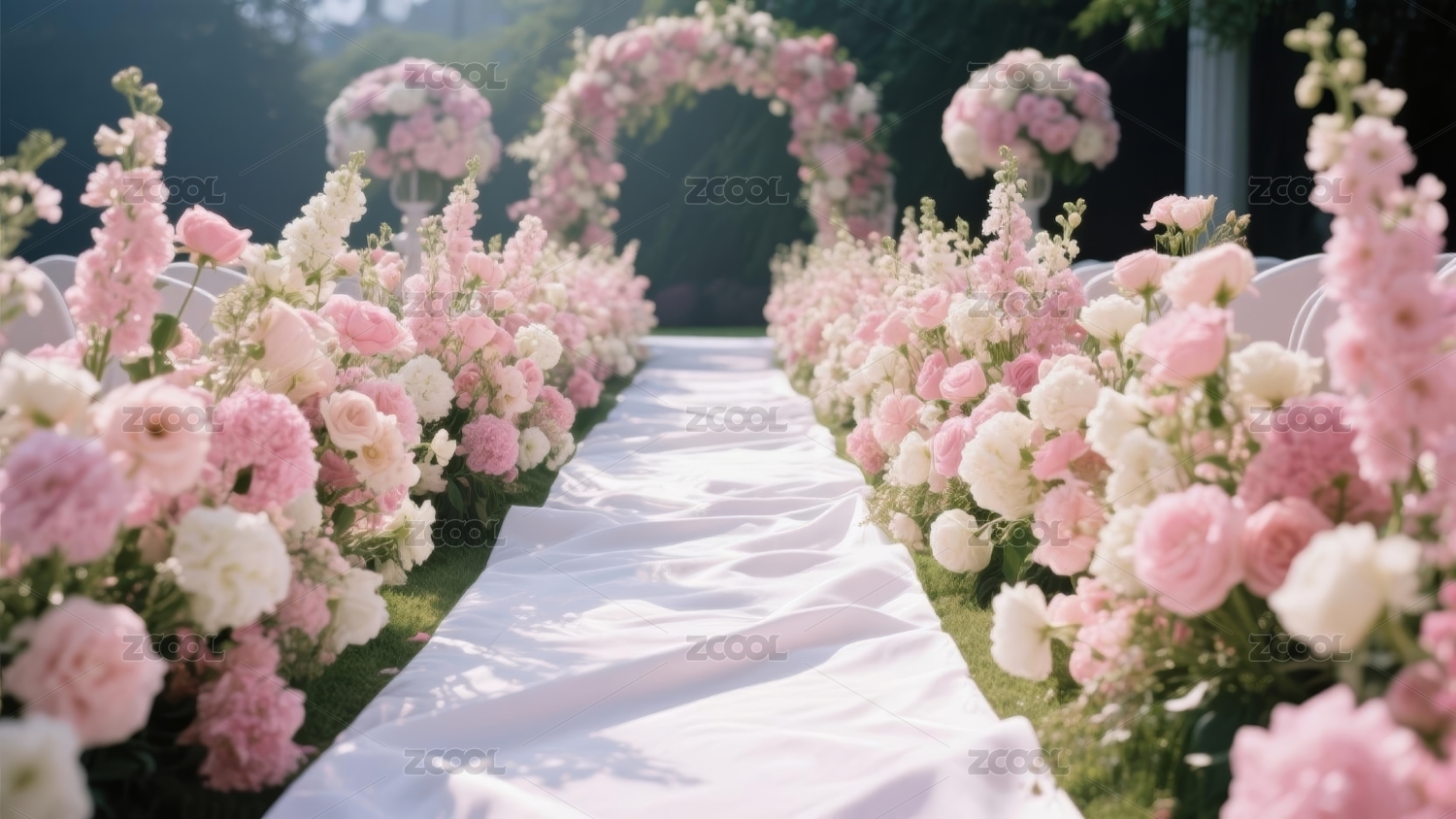 户外浪漫粉色系婚礼拱门