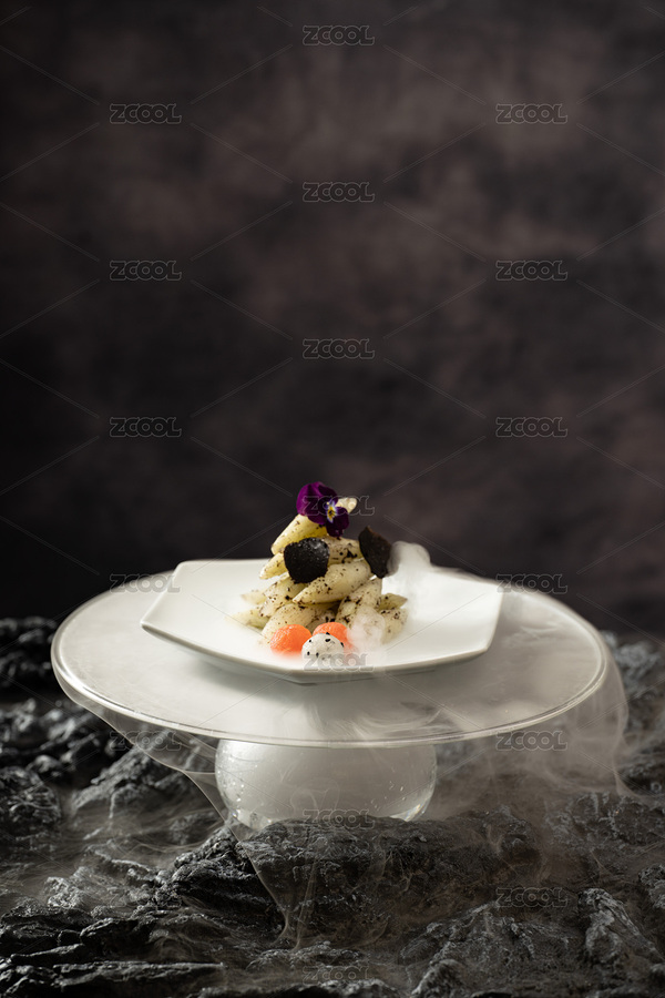 奶香火龙果豆腐摆放在黑色鹅卵石上