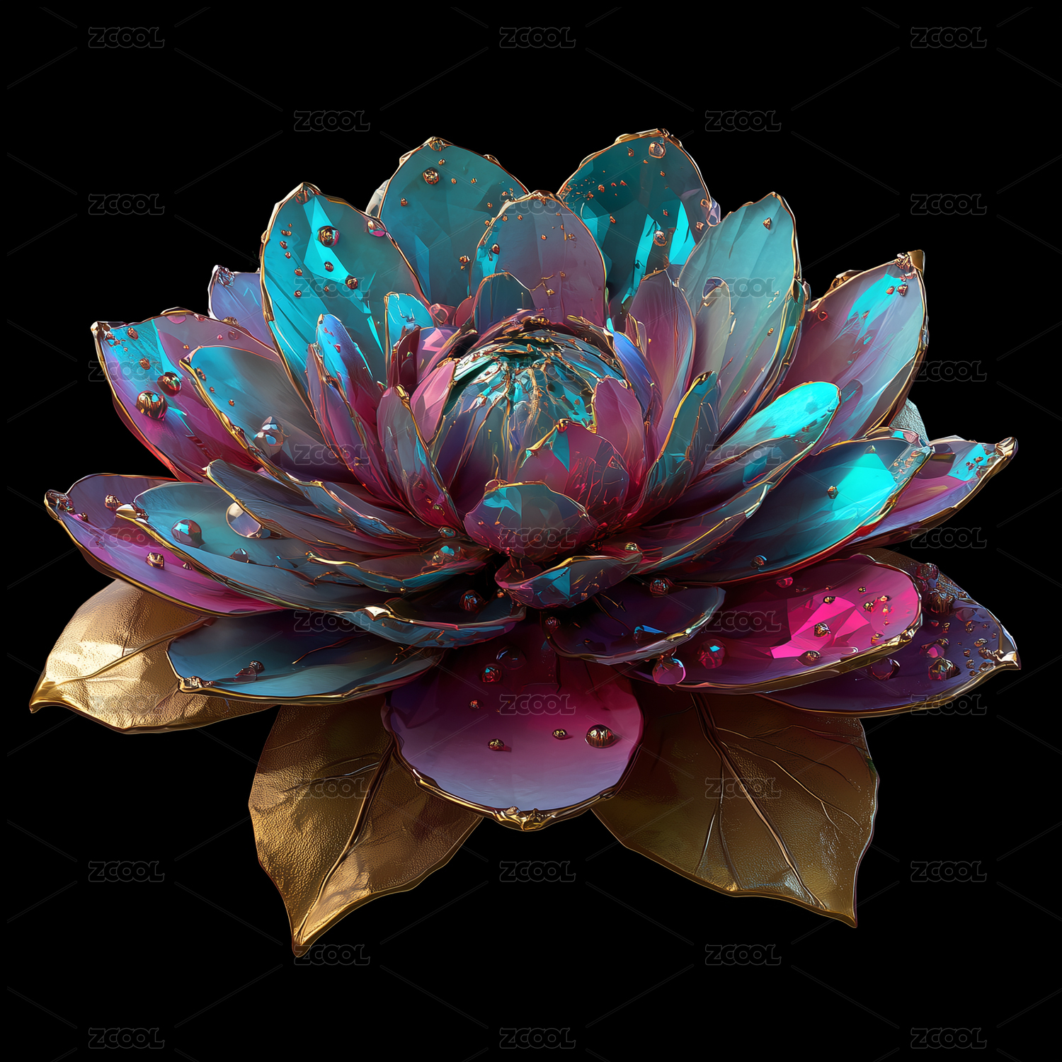 数字艺术,金属,花,红色,金色,绽放,精致,未来,水晶