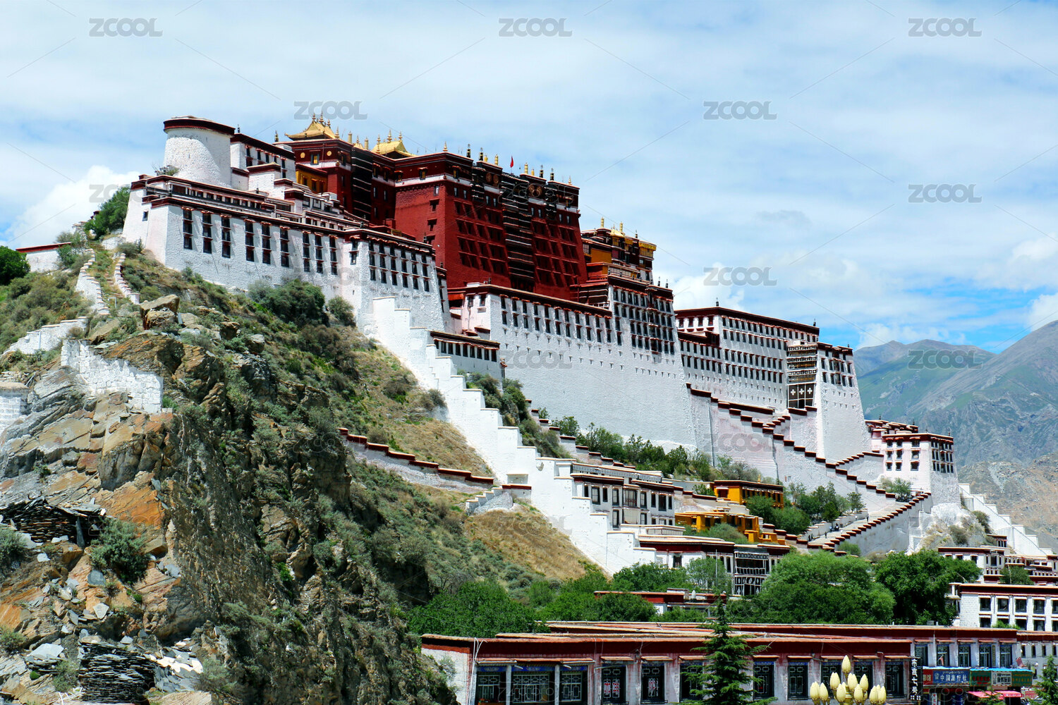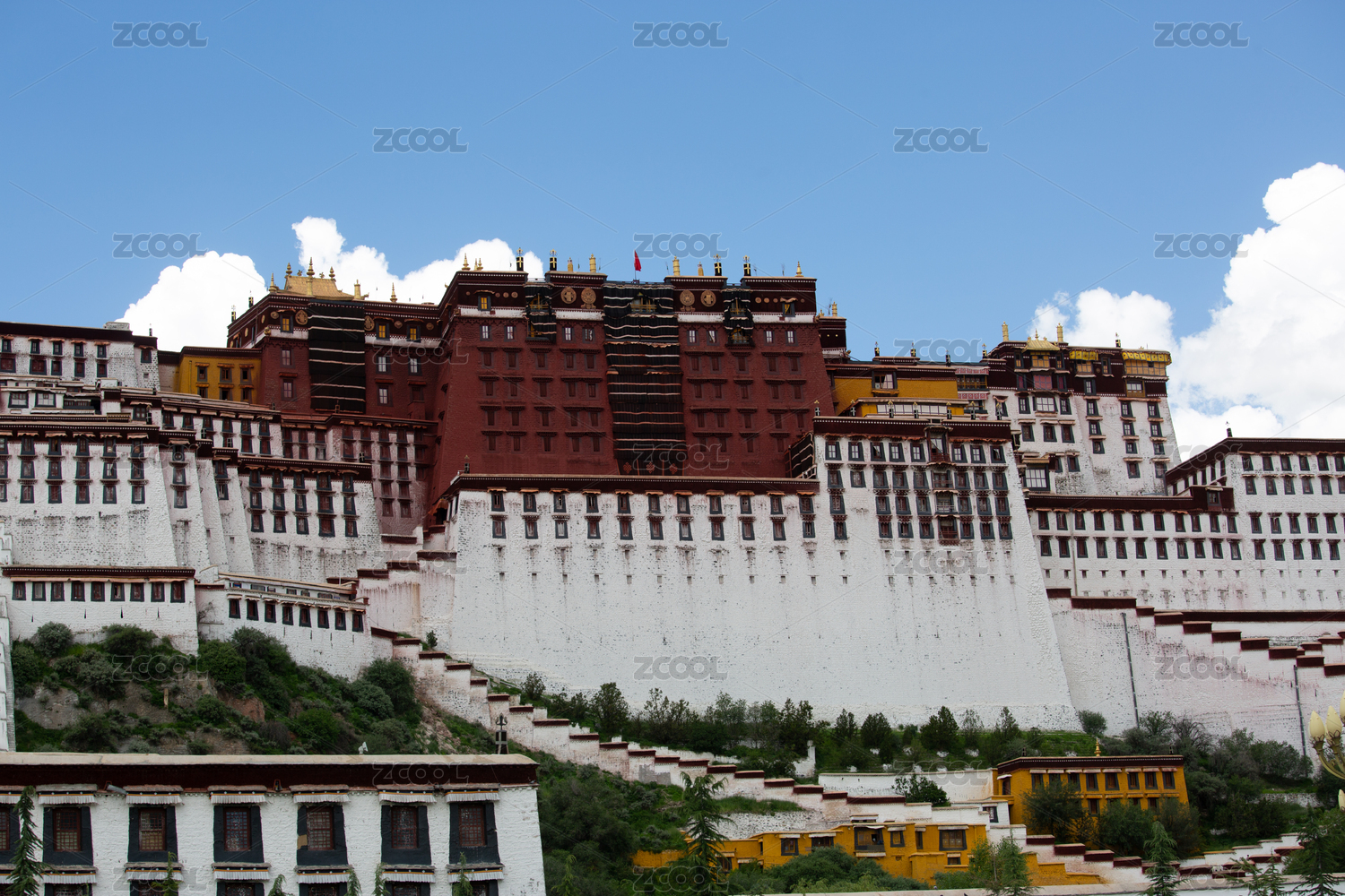 中国西藏拉萨布达拉宫白宫和红宫仰望布达拉宫
