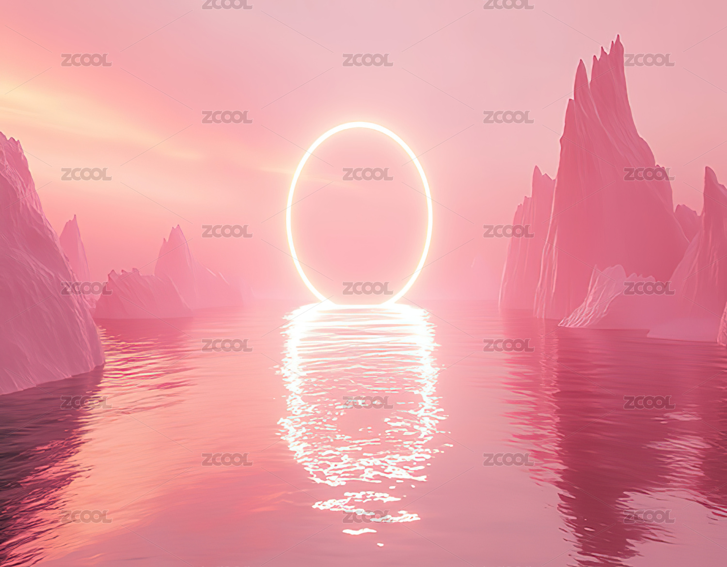 数码科技海边霓虹圆形框架抽象海报网页背景