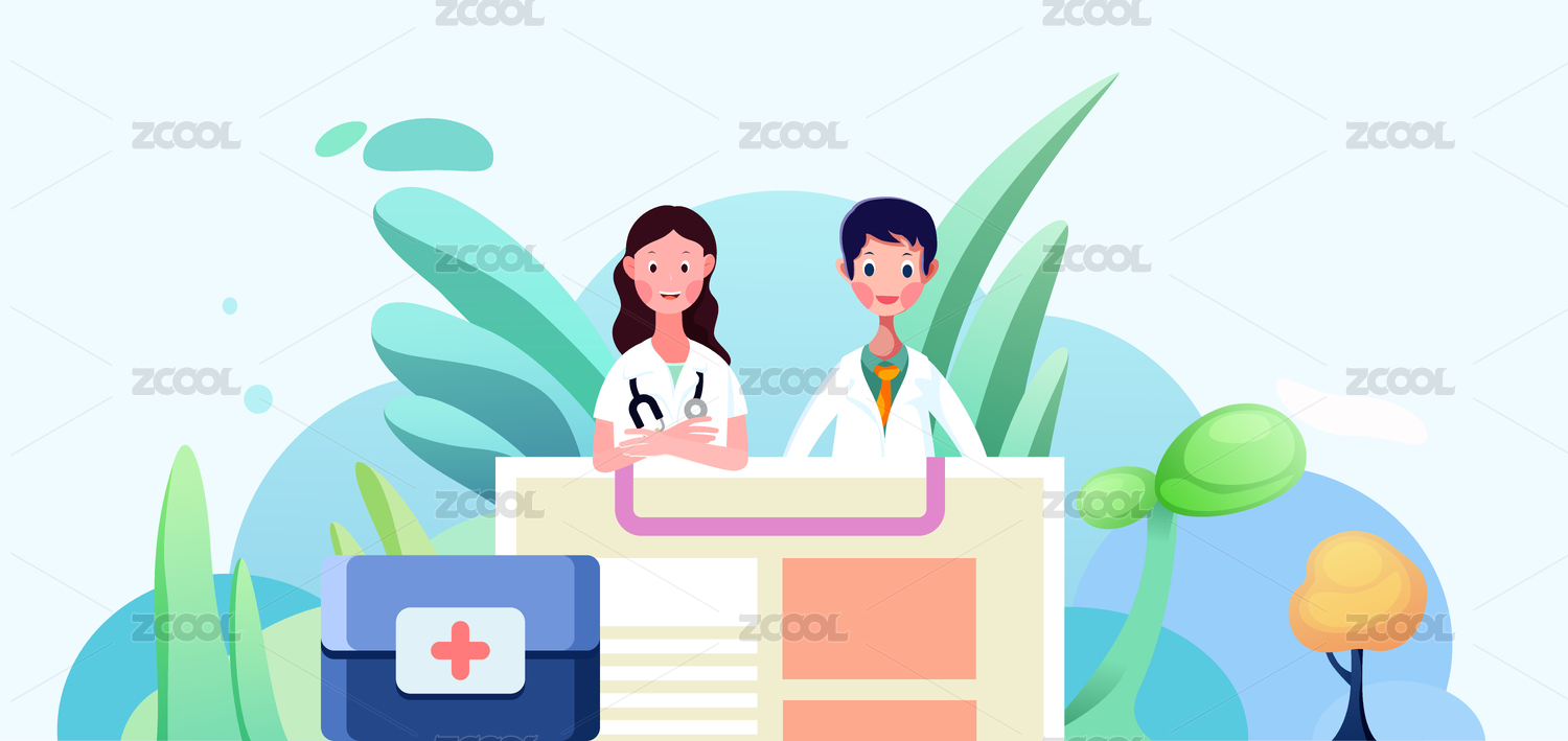 卡通手绘医生医疗体检问诊门诊闪屏插画