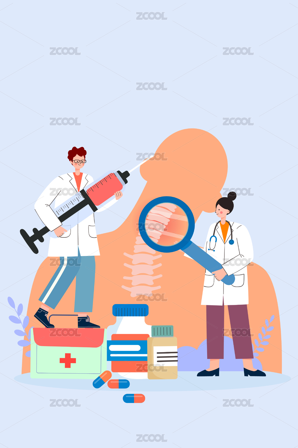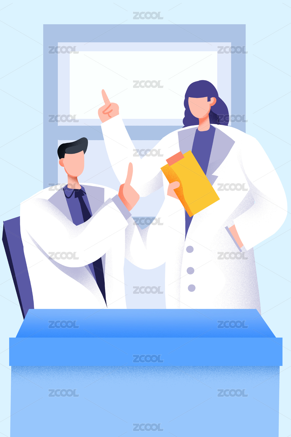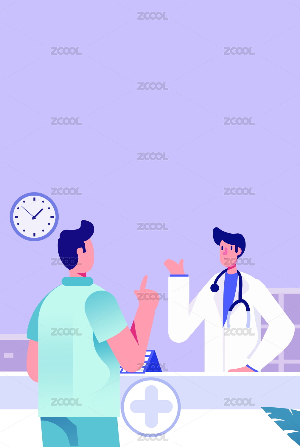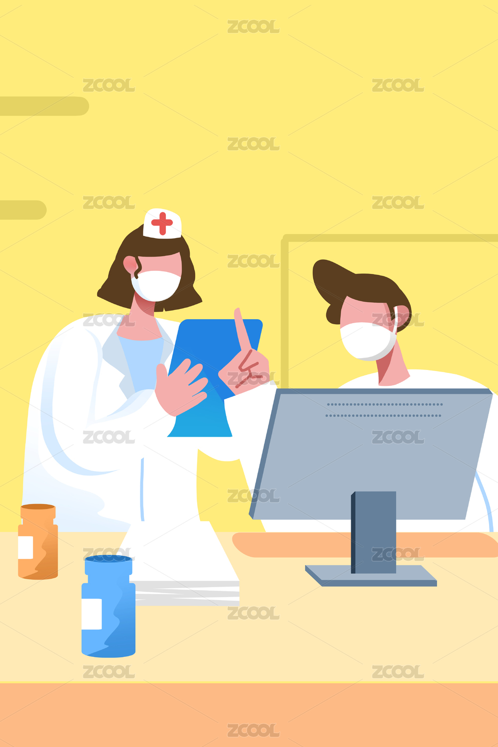 卡通手绘医疗医生主题病人问诊海报闪屏插画