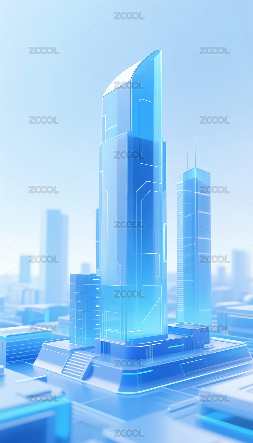 蓝色商务科技未来玻璃质感图形设计城市建筑
