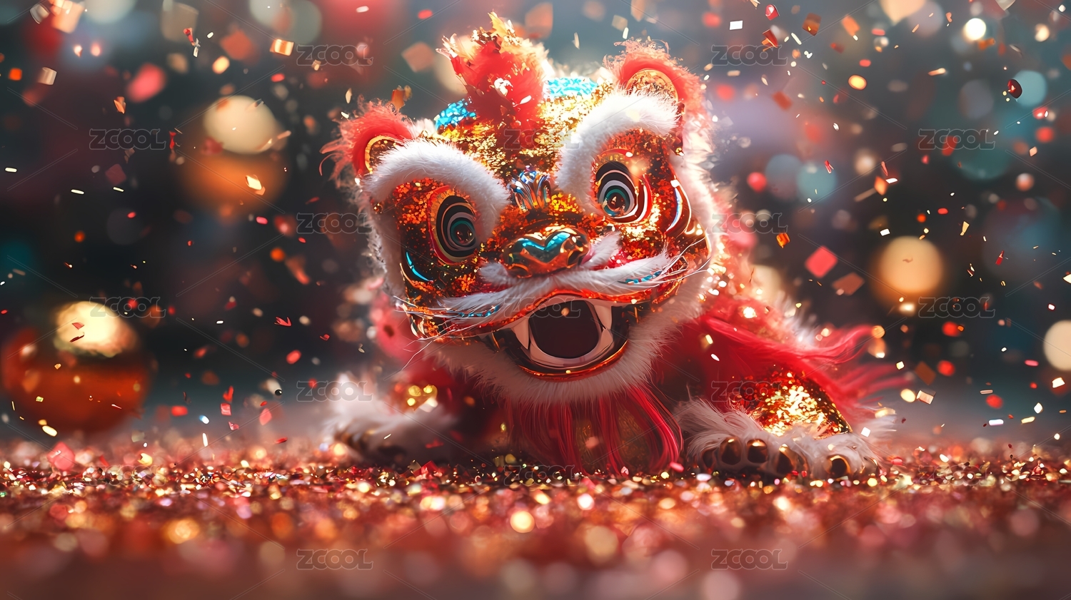 AIGCTP2024,舞狮,春节,新年,狮子,舞蹈,红色,金色,亮片,中国