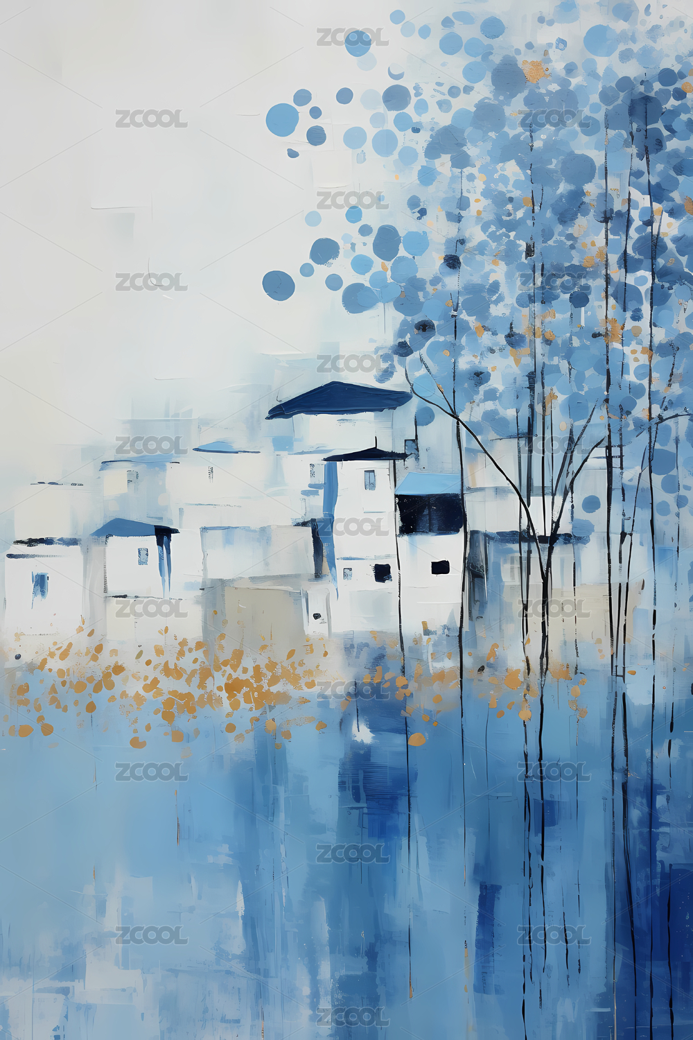水乡,风景,房屋,极简主义,素描,插画,多彩,几何,油画,手绘