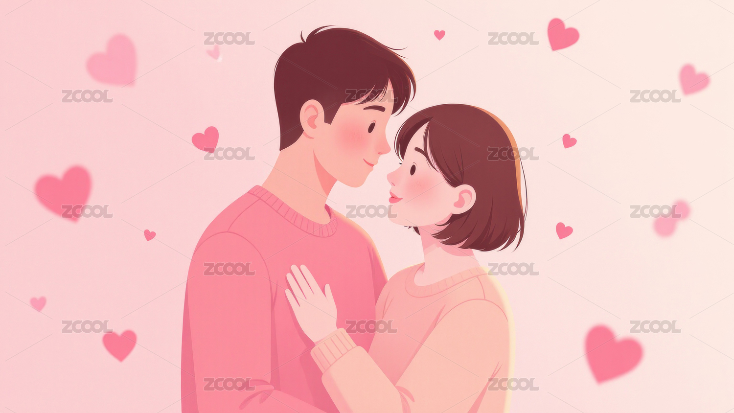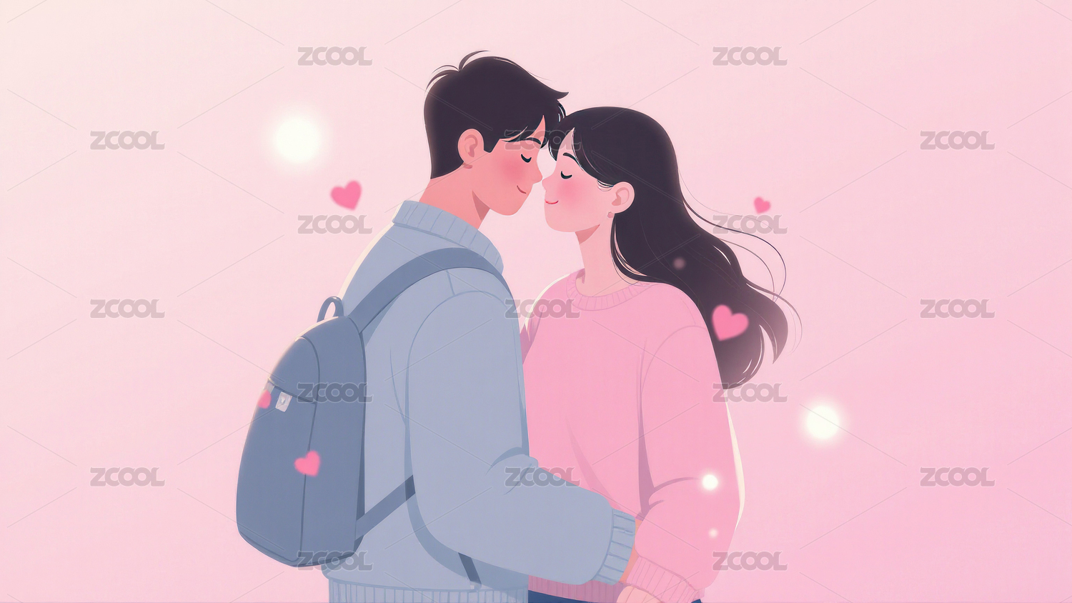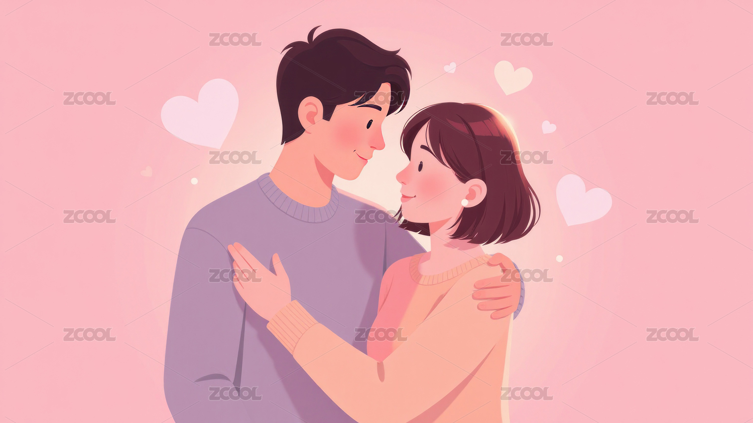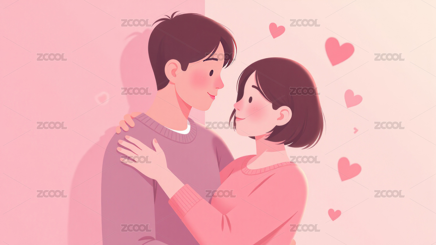 情侣间的甜蜜拥抱爱意满满的二人世界情人节