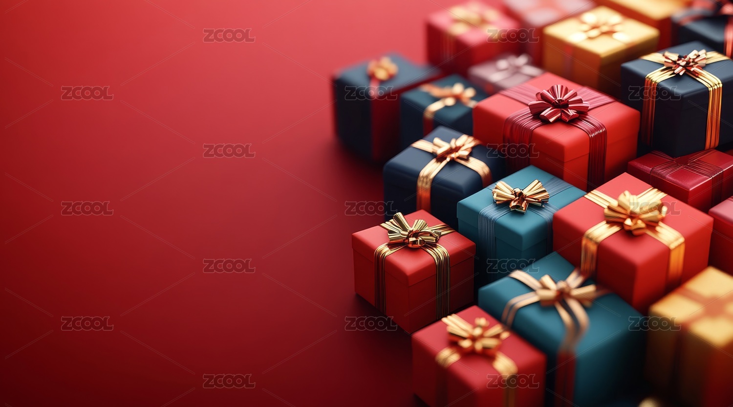 红色背景多彩礼物盒