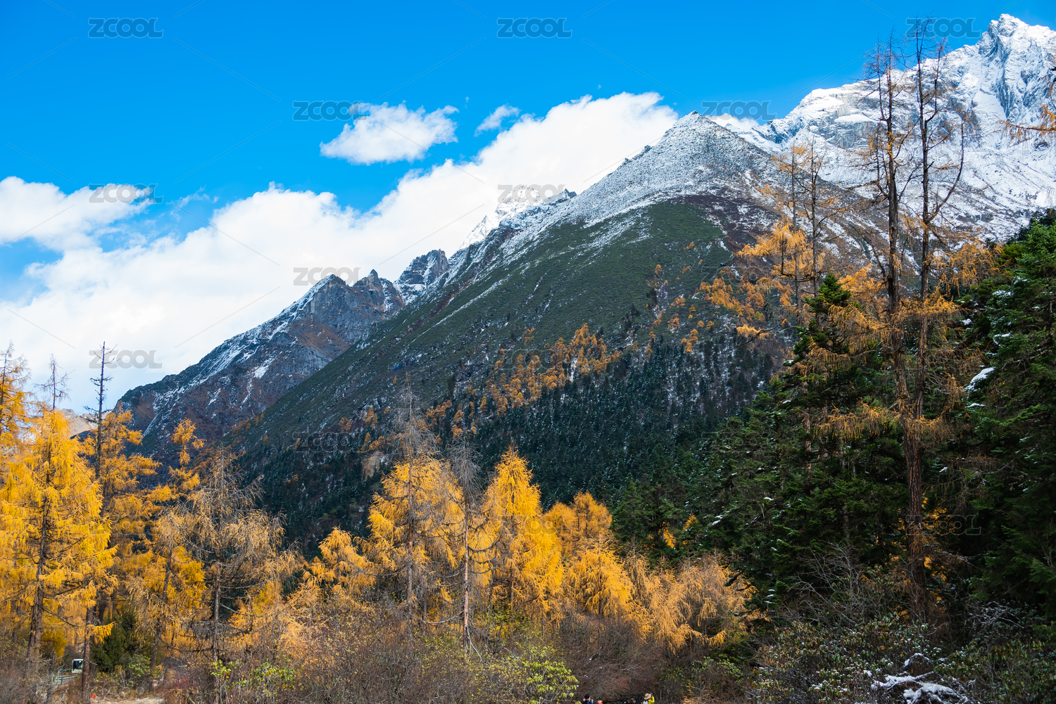 甘孜藏族自治州四姑娘山双桥沟秋季雪山彩林风景