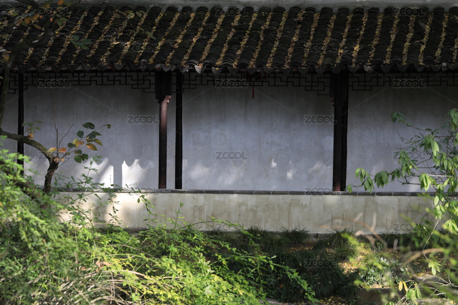 江南水乡乌镇马头墙屋檐爬山虎秋色