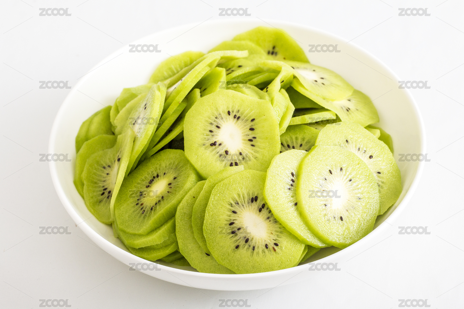 白色桌面碟子中的切开的新鲜水果猕猴桃果肉