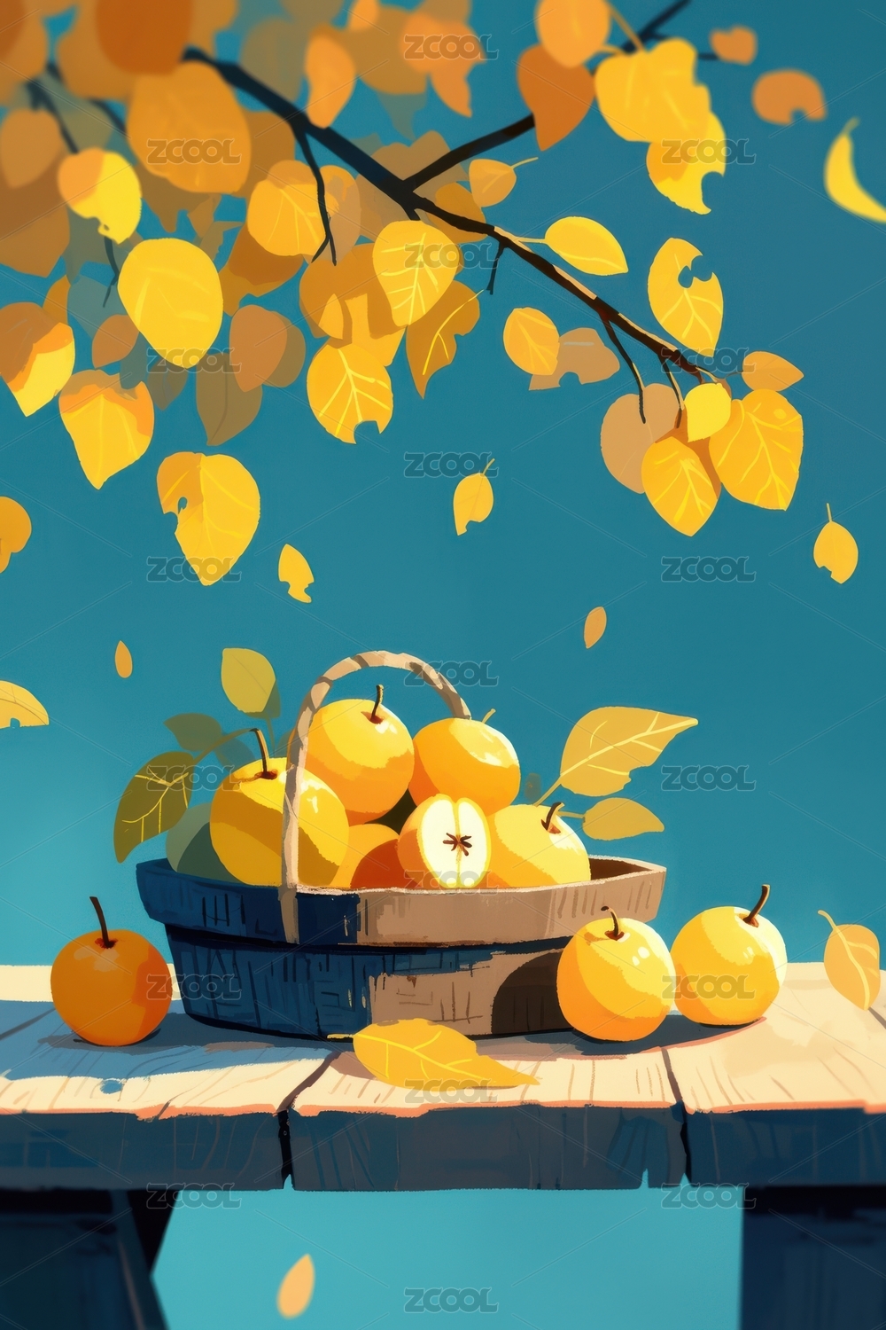 黄色,插画,梨,果实,水果,秋天,叶子,自然,卡通,丰收