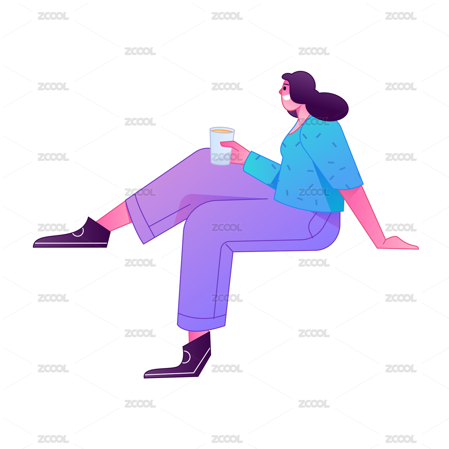 卡通手绘男人抽烟女人生气闪屏海报插画