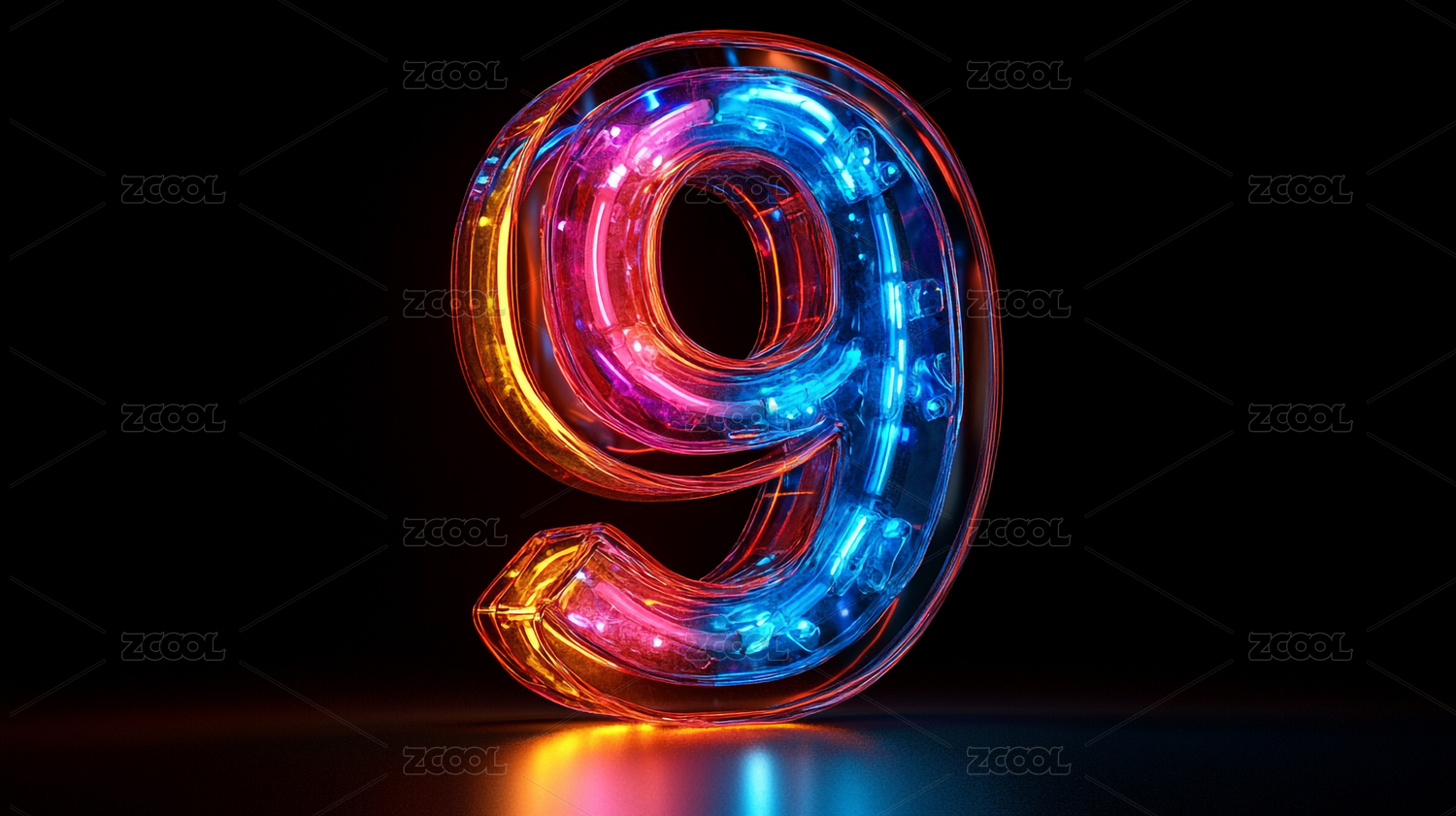 三维立体霓虹数字9