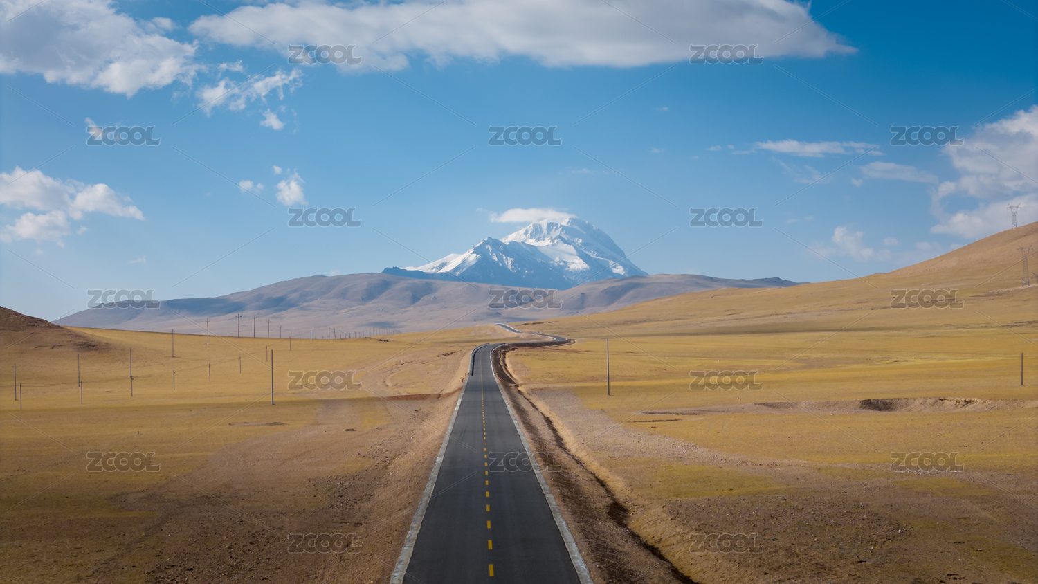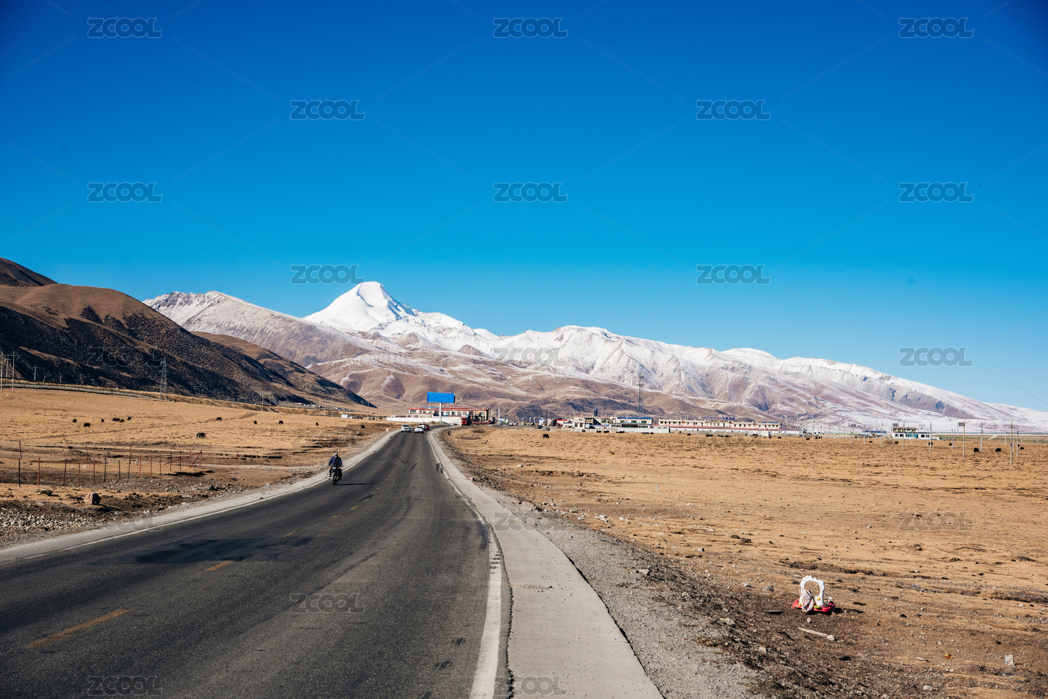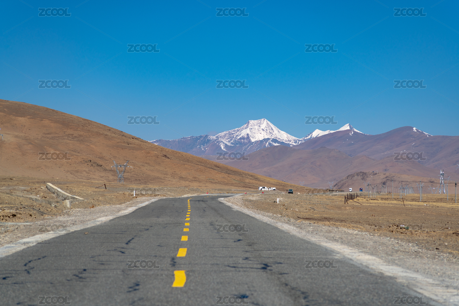 中国西藏阿里措勤县的国道G216和夏岗江雪山