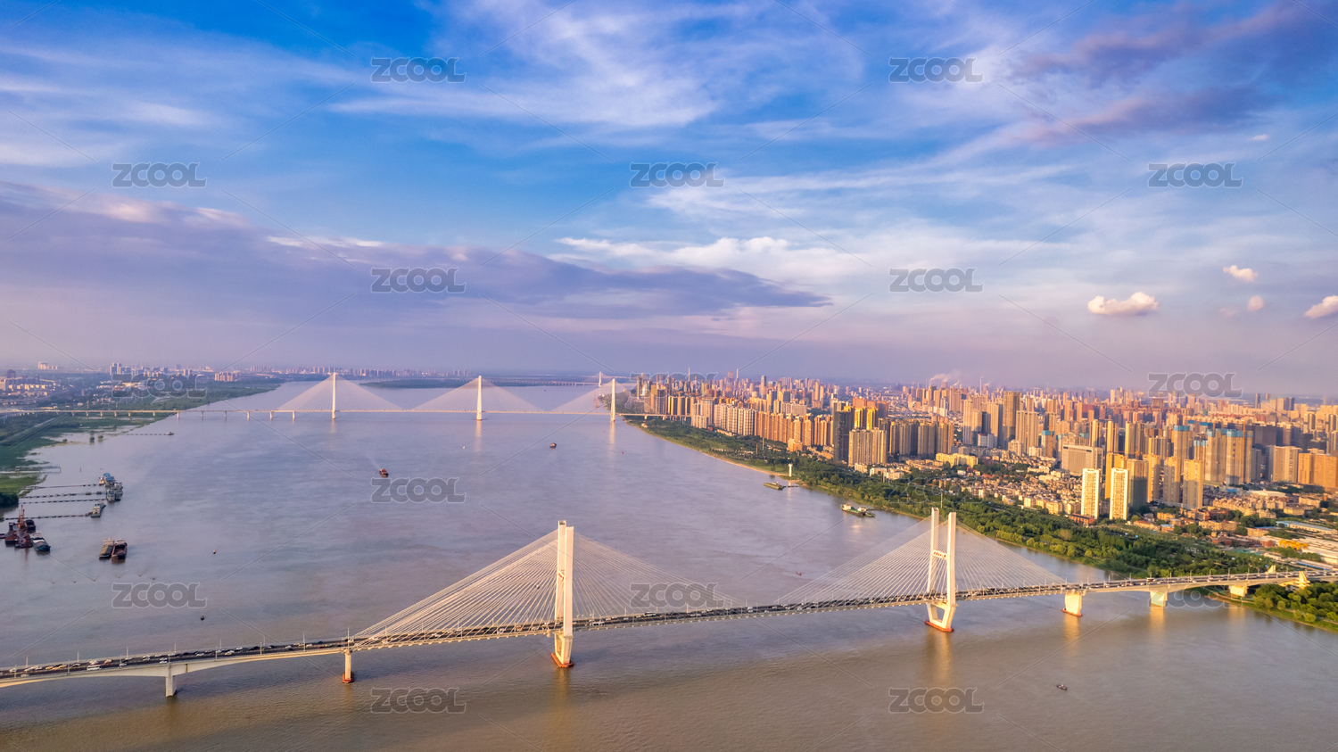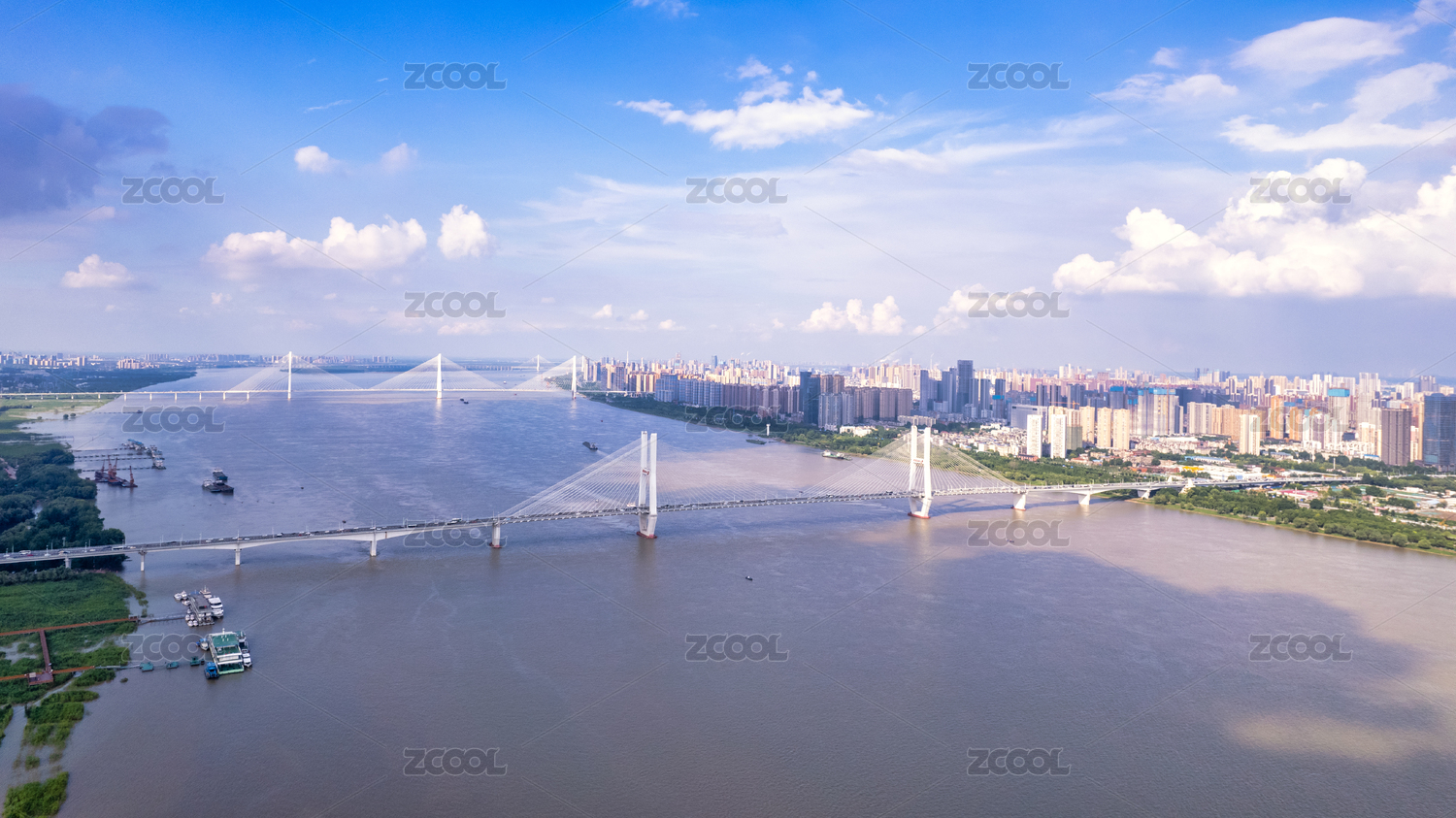 中国湖北武汉长江二桥与二七长江大桥航拍