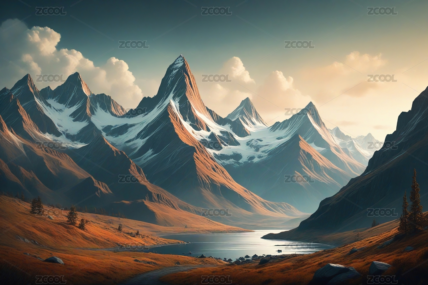 天空,自然,风景,宁静,美丽,艺术,雪山,色彩,黄昏,湖泊