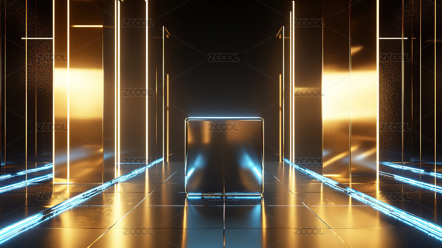 未来, 科技, 虚拟现实, 设计, 现代, 速度, 光线, 蓝色, 反射, 抽象