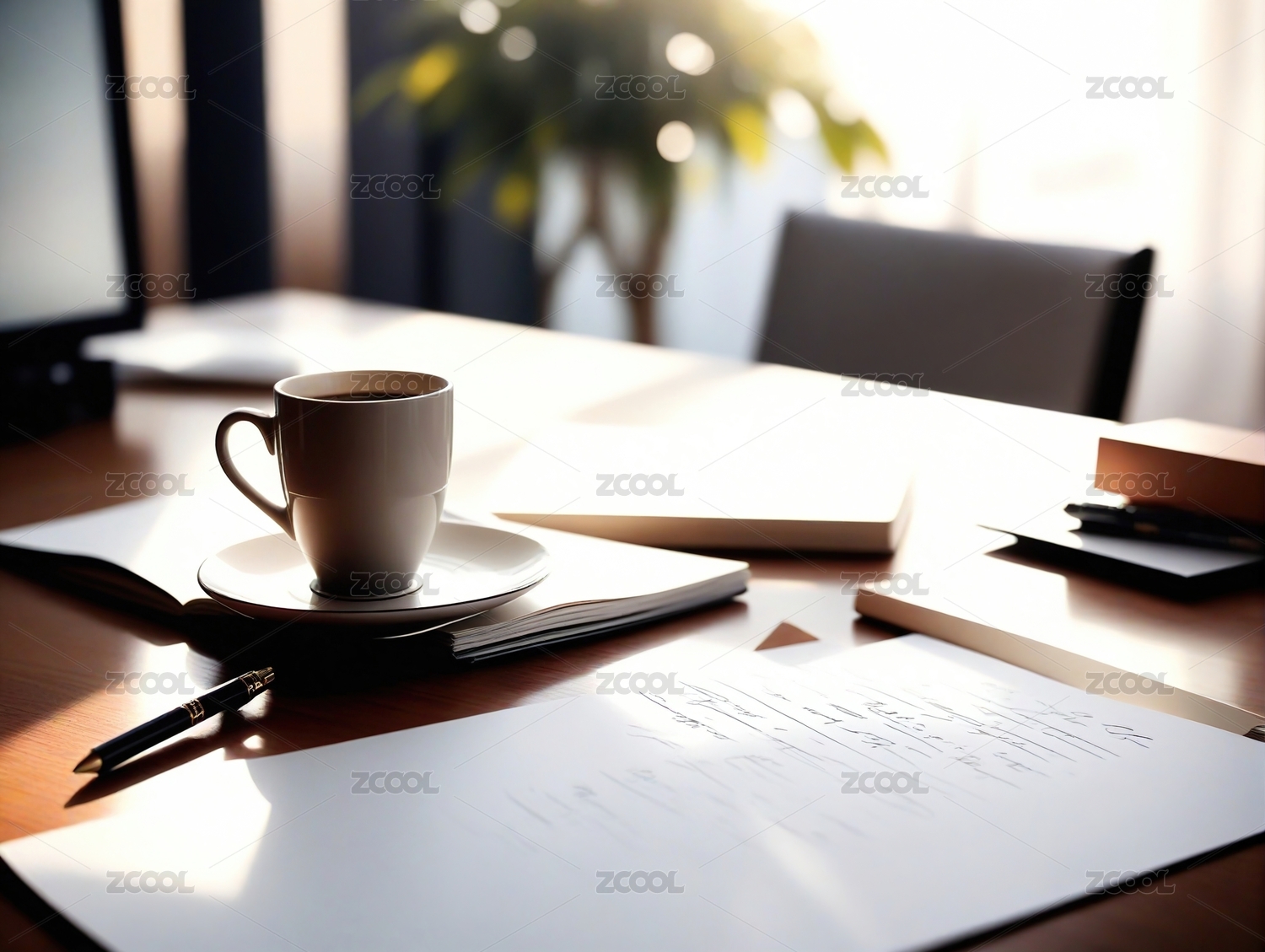 光线,现代,静物,纸张,办公桌,文件,笔,日落,窗户,城市景色