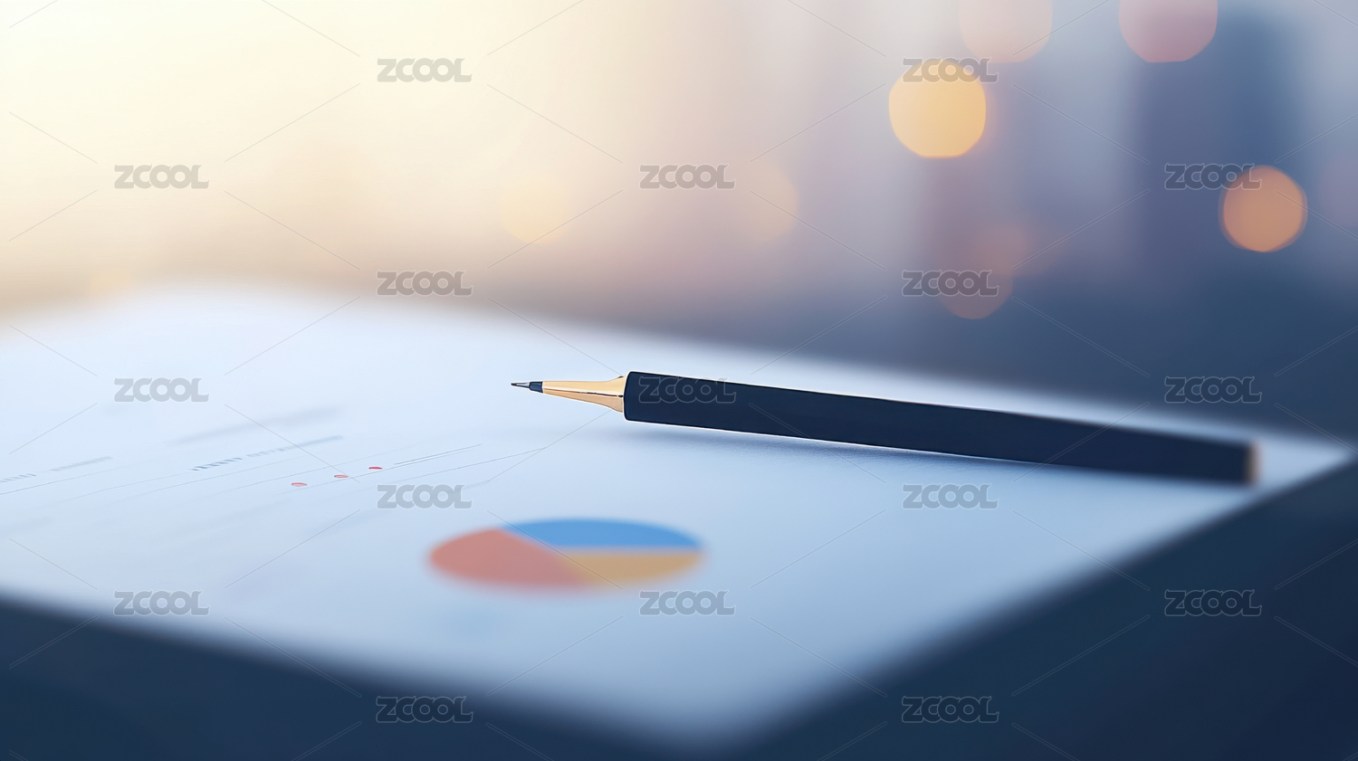 清新明亮纯色桌面上铅笔和纸3D立体插画
