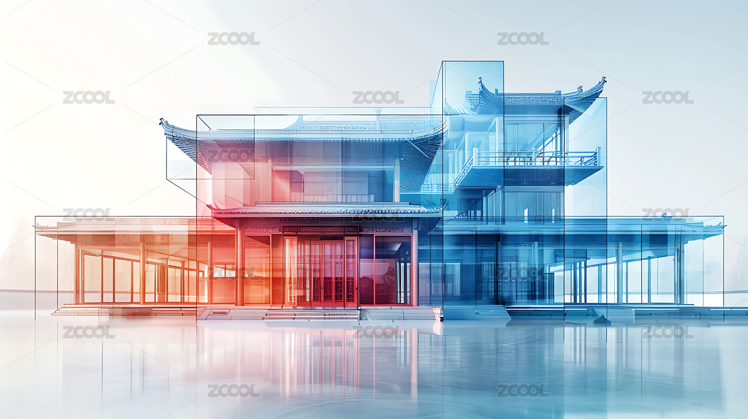 建筑,水晶,透明,超现实,中式,设计,3d,水墨,玻璃,倒影