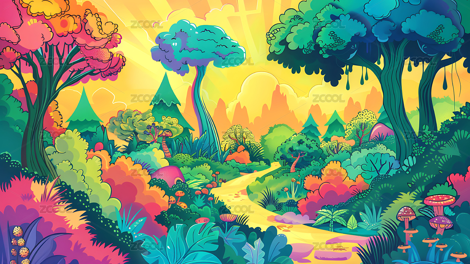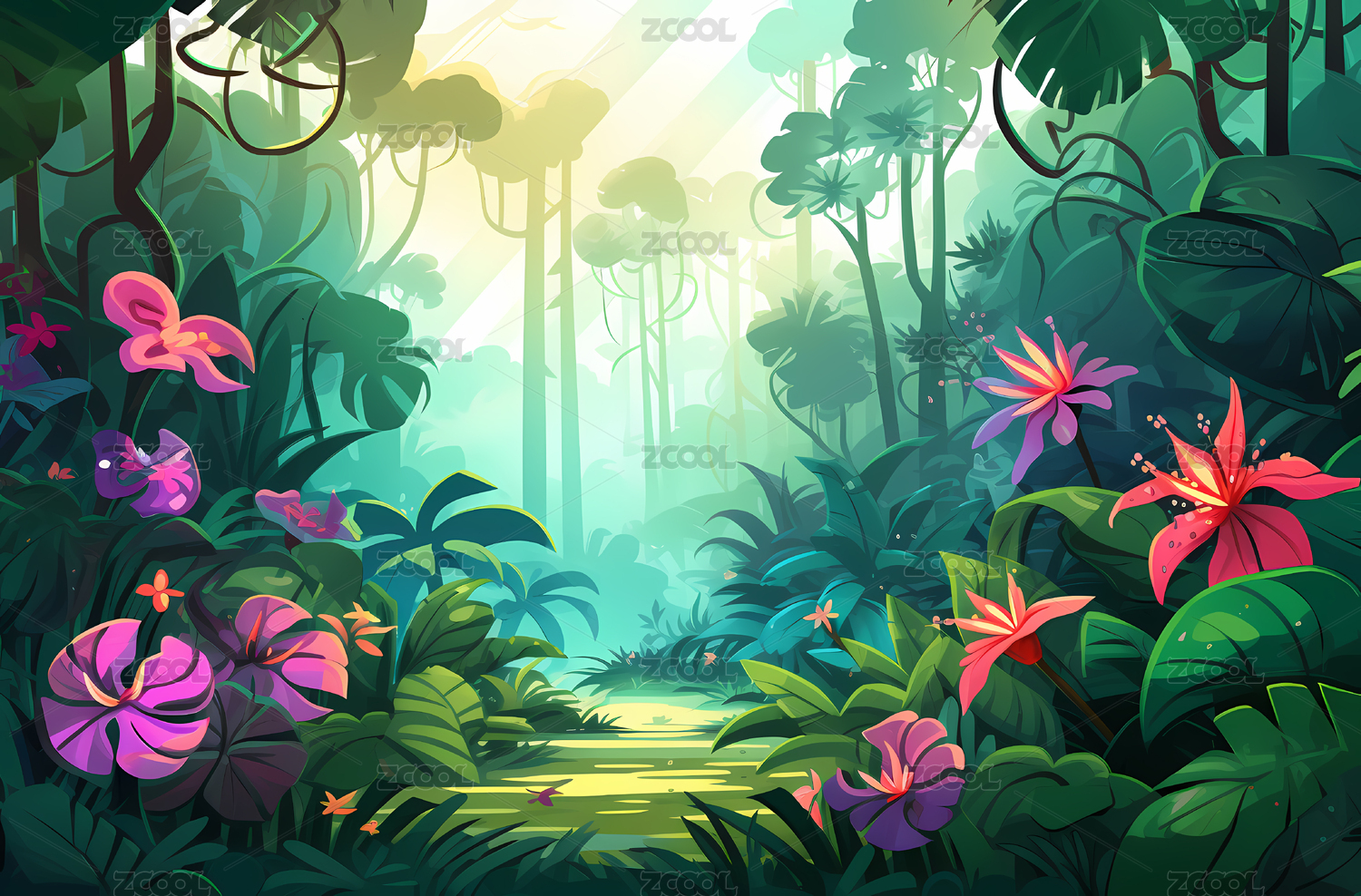 绘本,儿童,卡通,童书,可爱,植物,风景,森林,探险,丛林