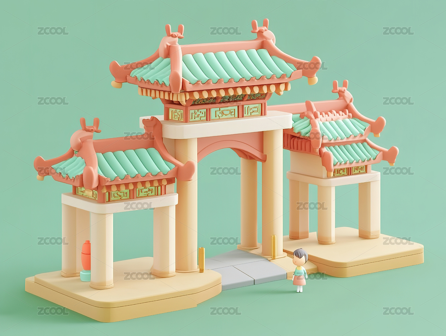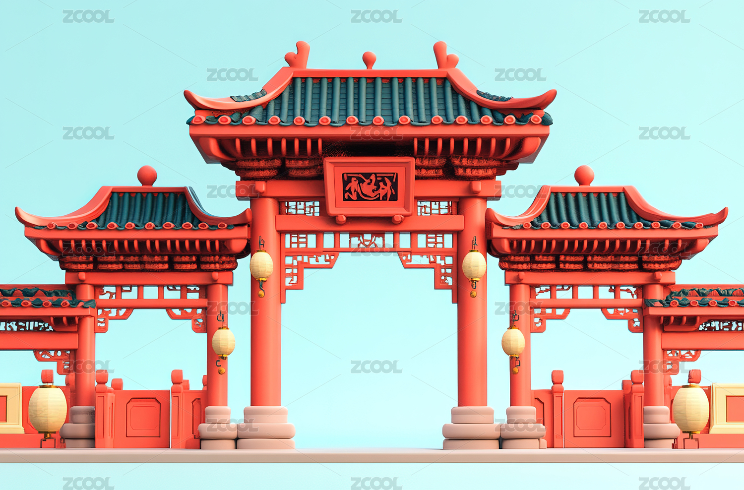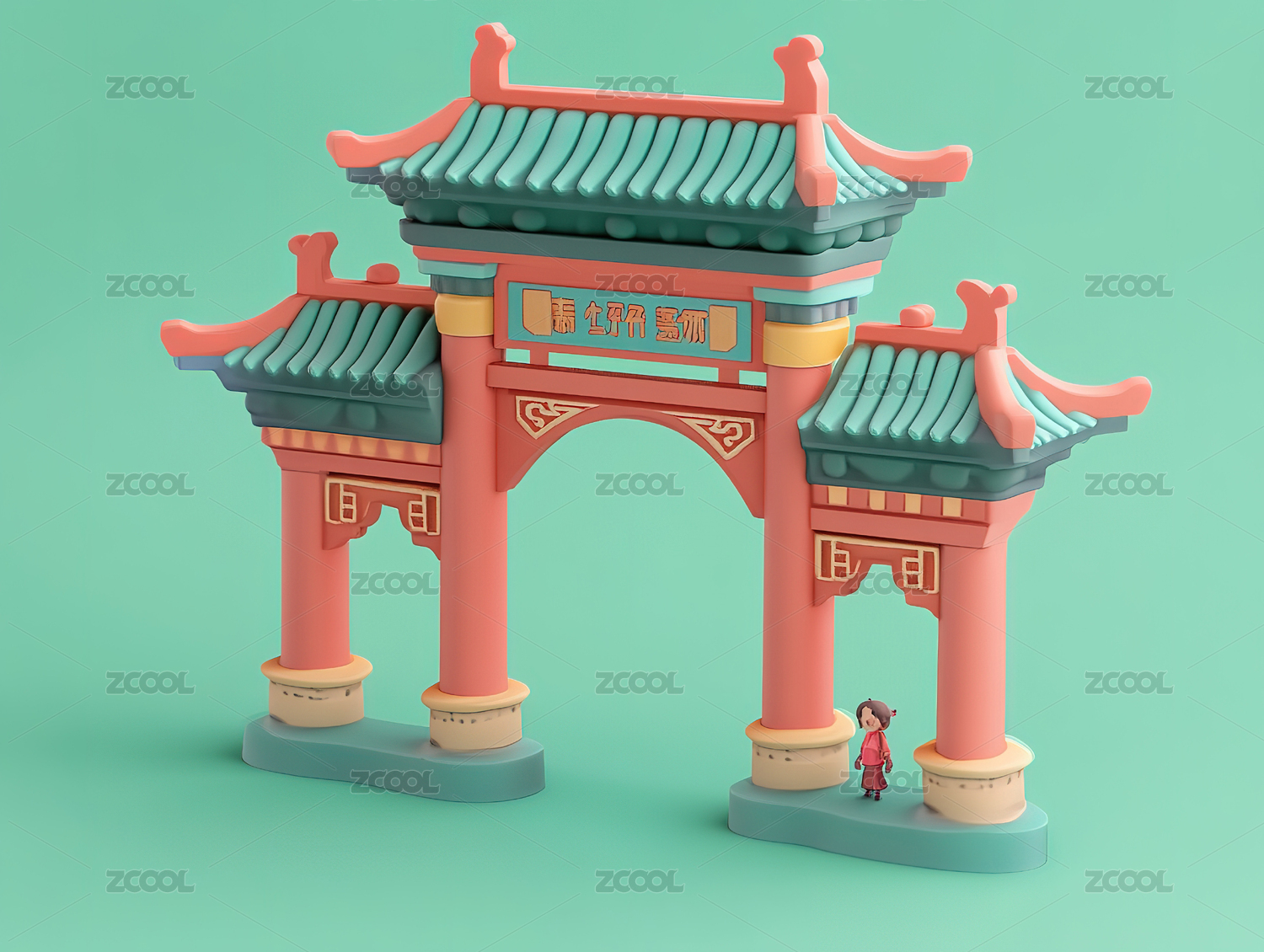 中国文化,插画,PNG,免抠图形,元素,中国画,古典风格,大门,历史服装,春节