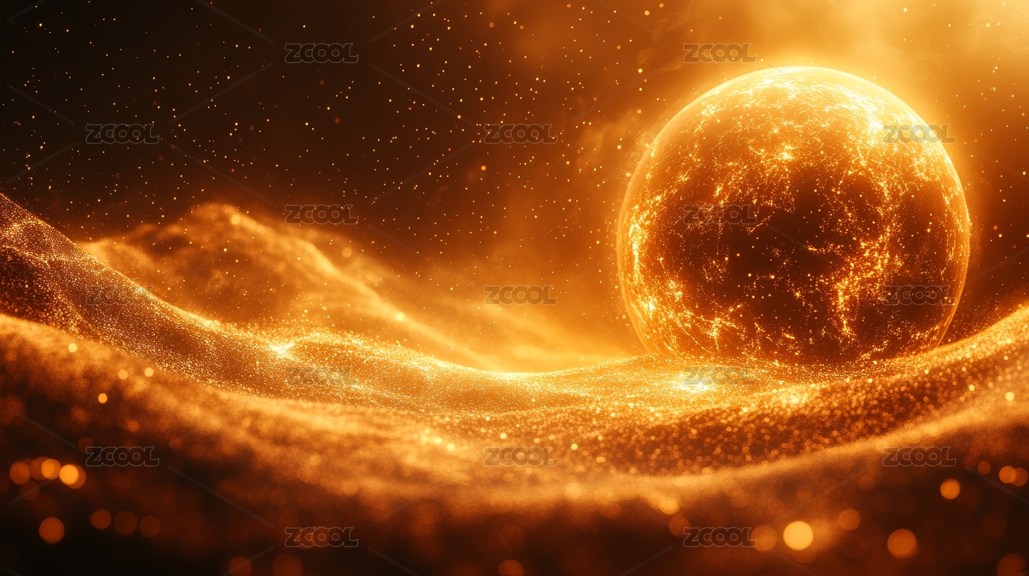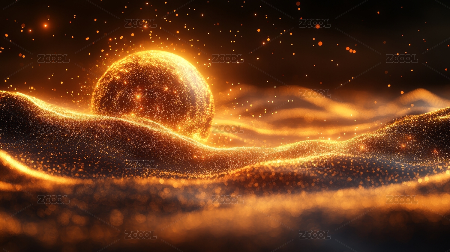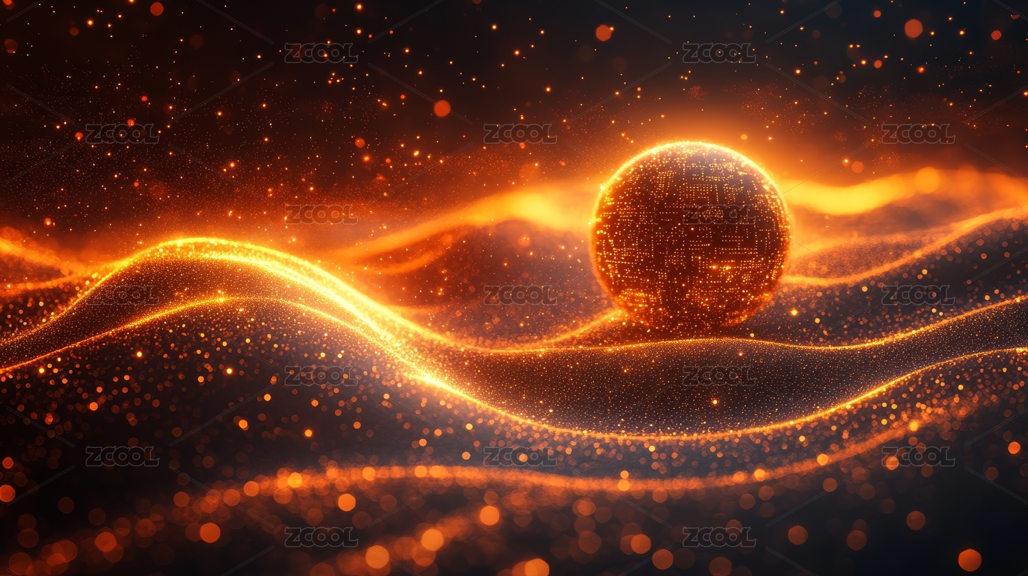 深蓝色背景下发着橙色光的蓝色玻璃圆球