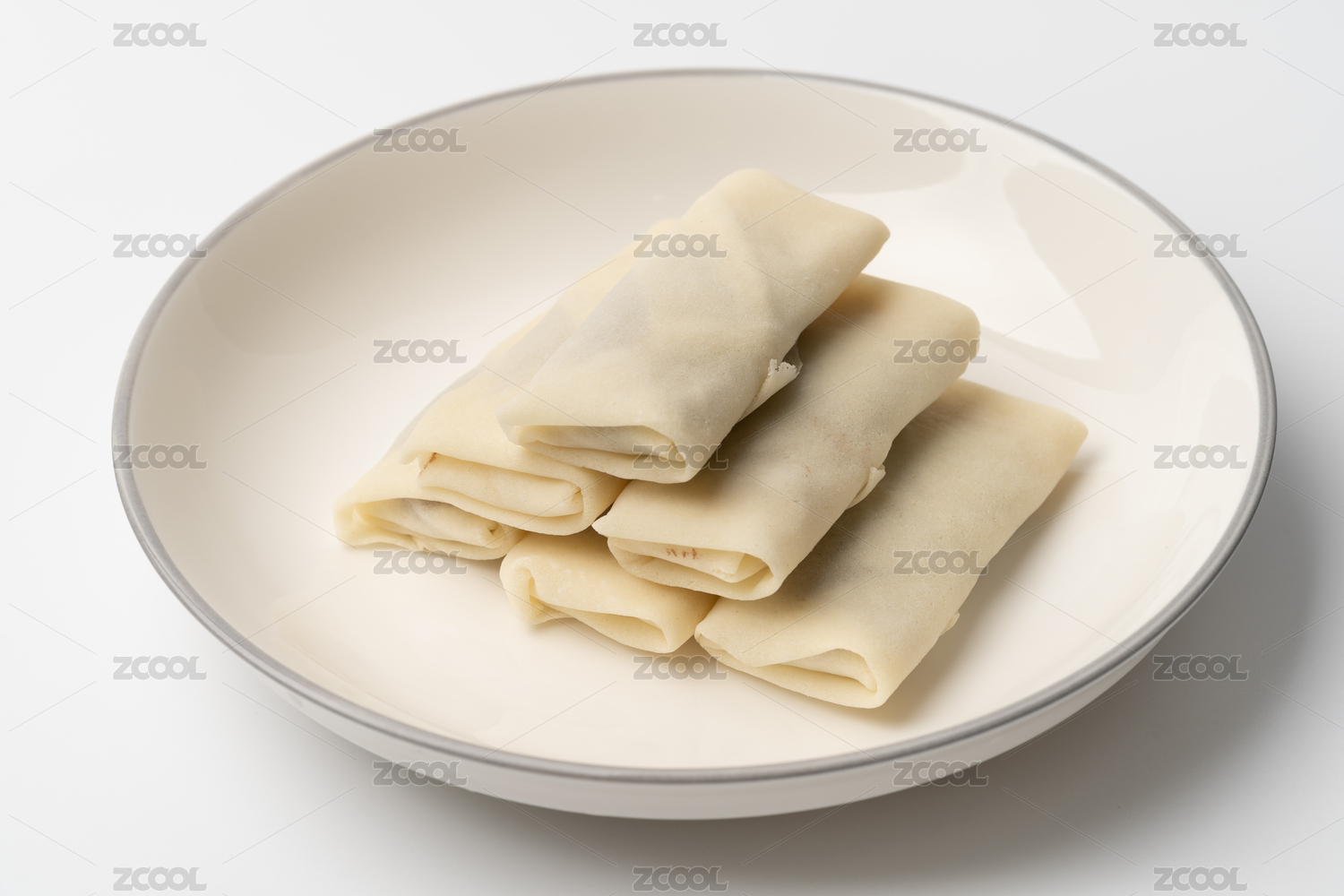 木纹桌上的速冻春卷