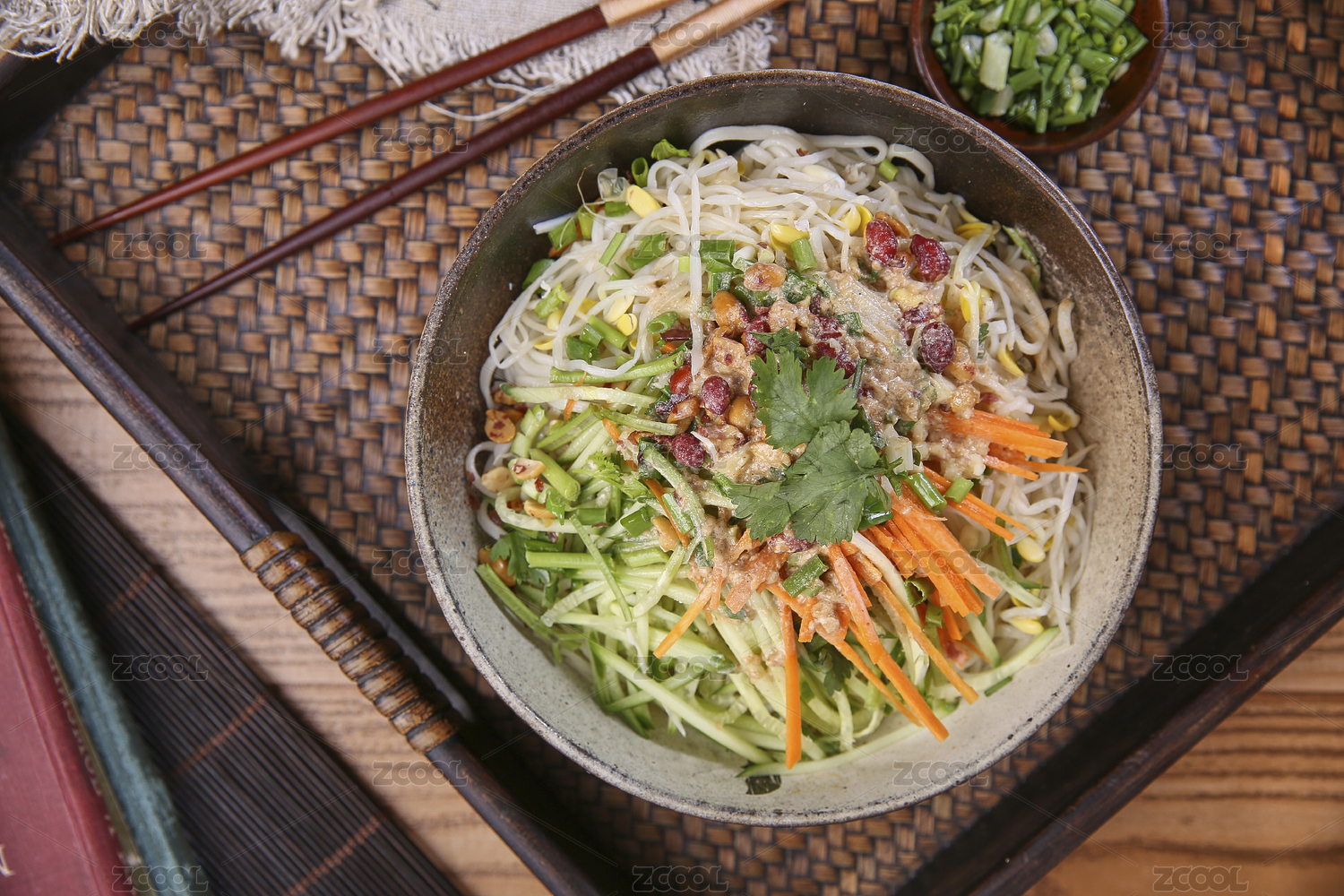 简单背景下的传统炸酱面
