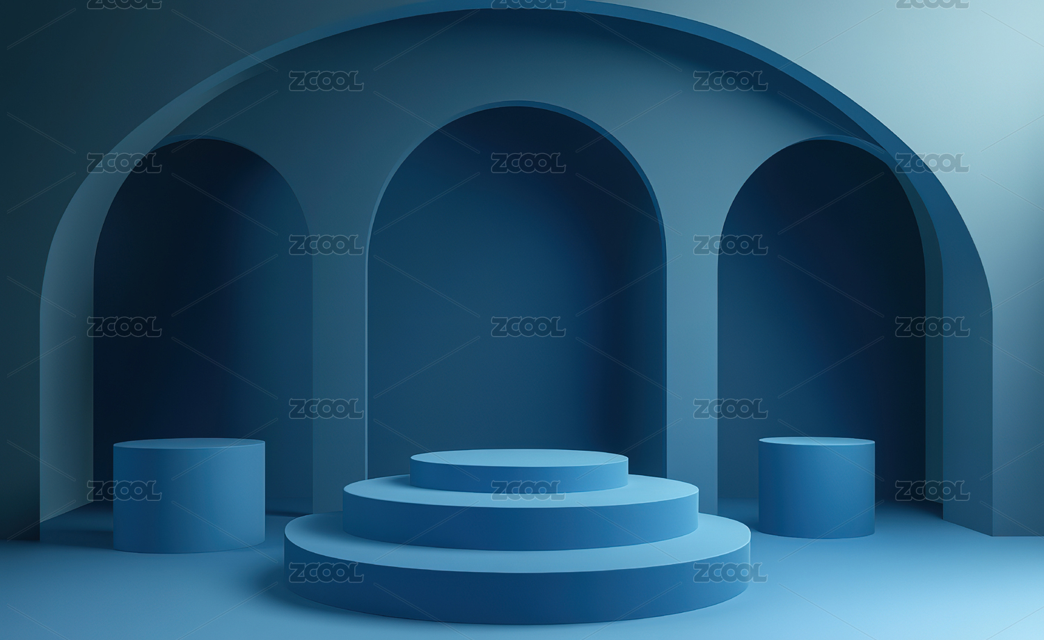 蓝色,圆形,产品展台,背景,时尚,电商,现代,抽象,插画,舞台