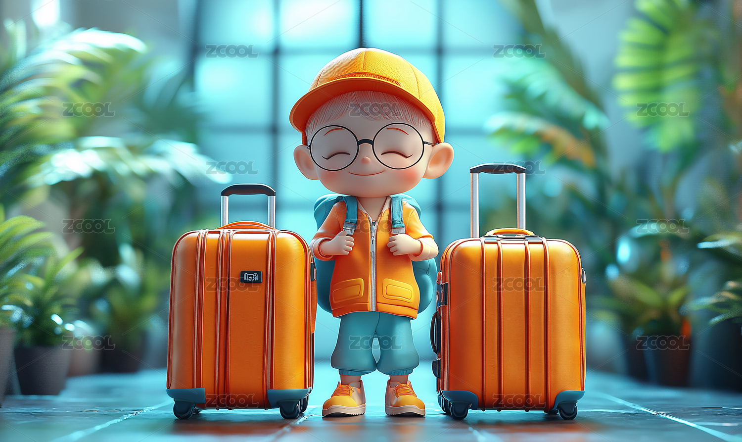 AIGC202404,行李箱,出行,旅行,旅游,插画