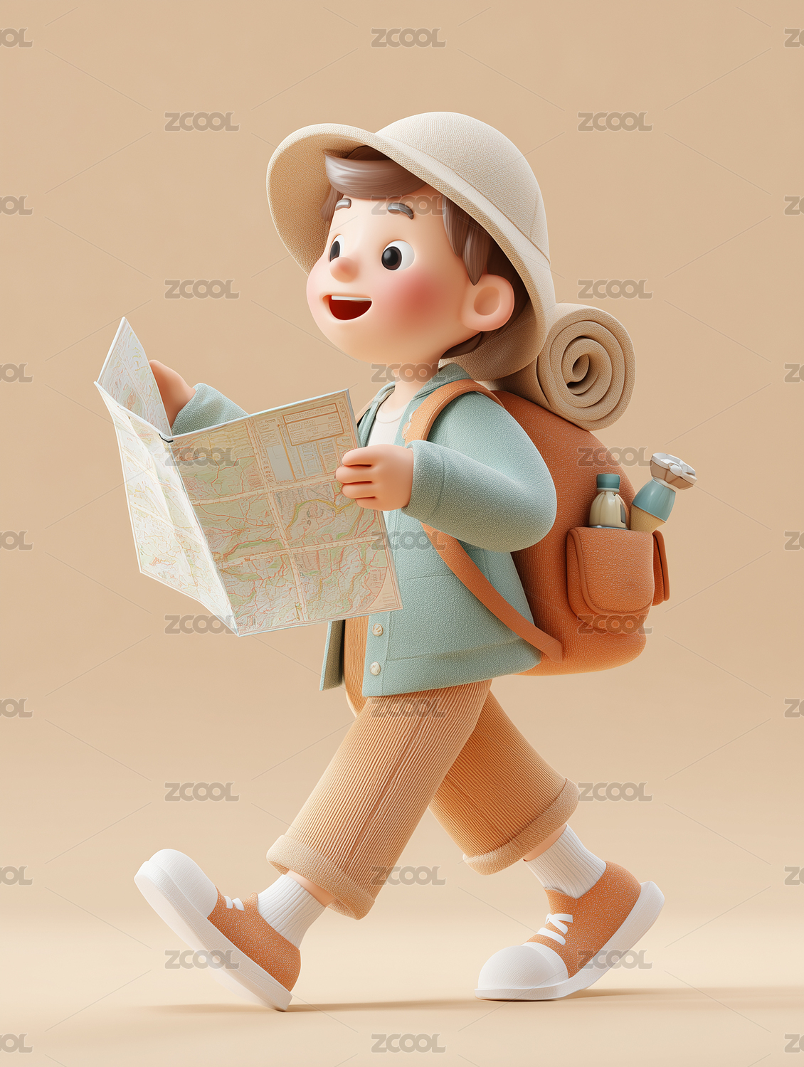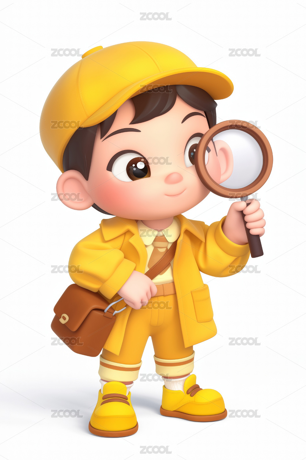 3D卡通风格的可爱男生拿着一个放大镜观察