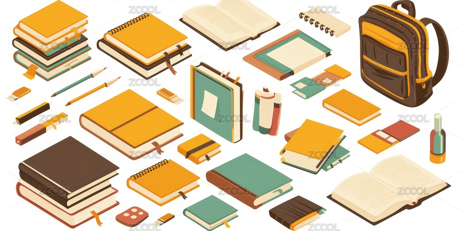 多样书籍与背包组合