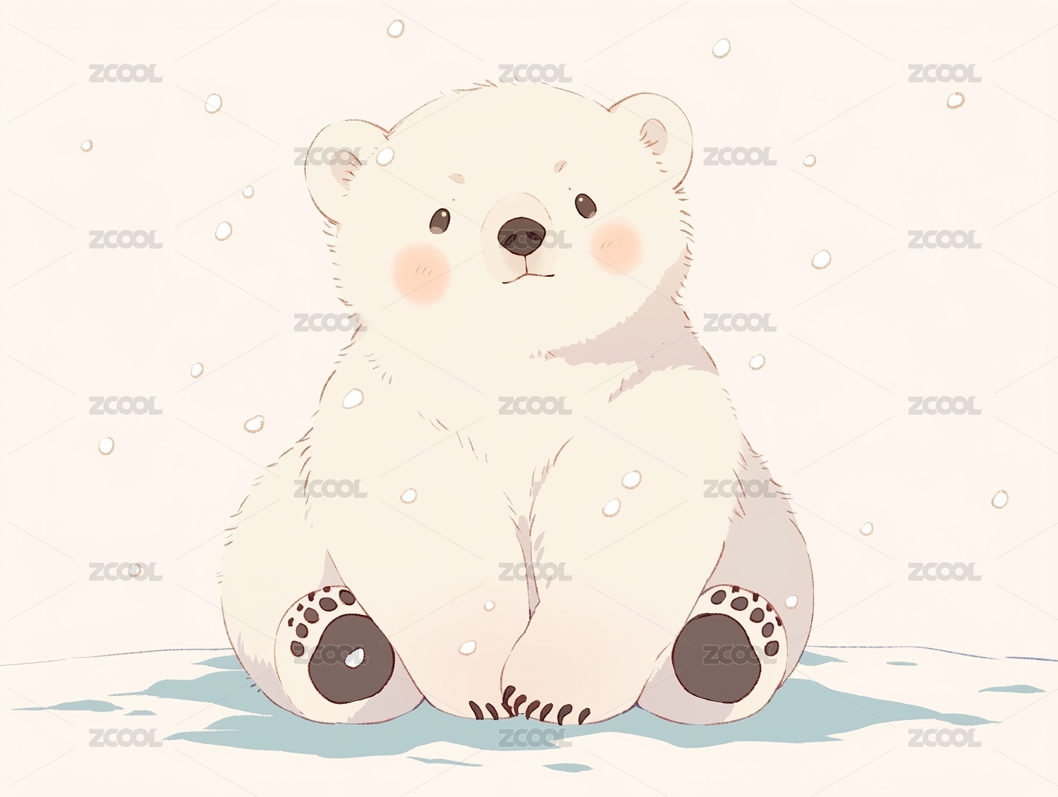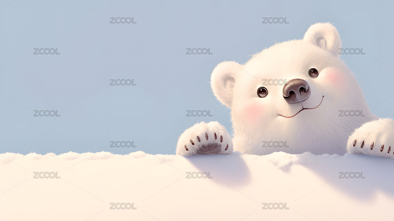 北极熊可爱唯美野生动物3D卡通插画壁纸