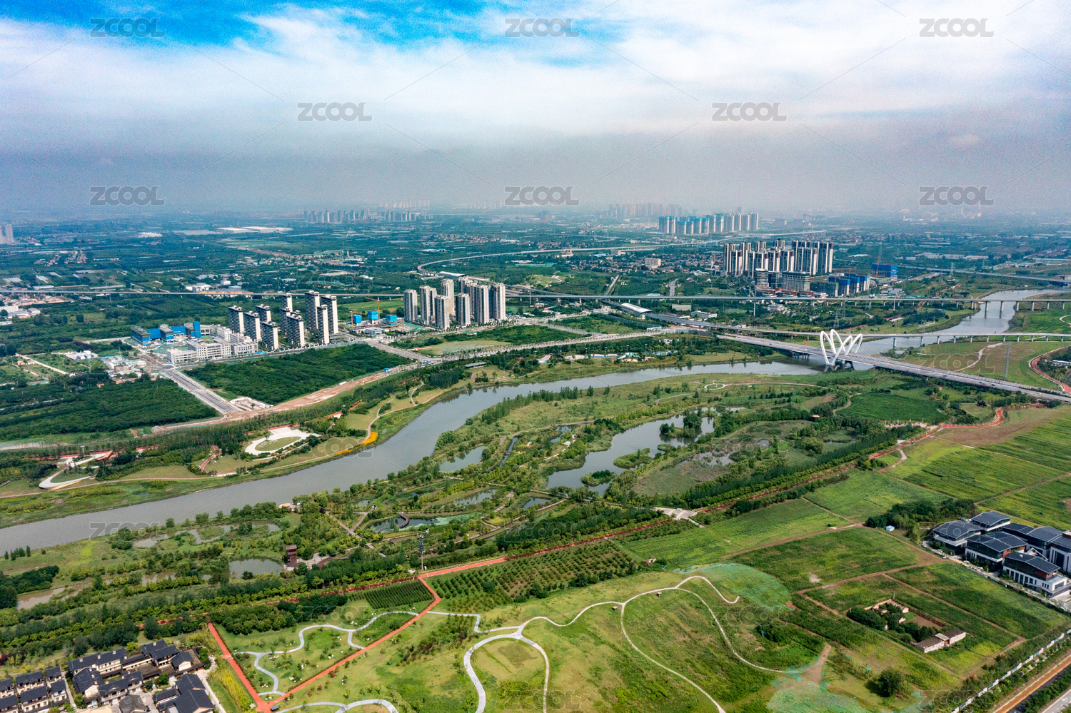 俯瞰中国上海市奉贤区金海湖上海之鱼全景