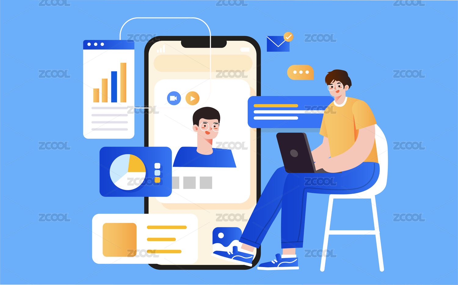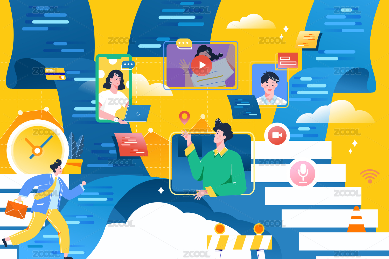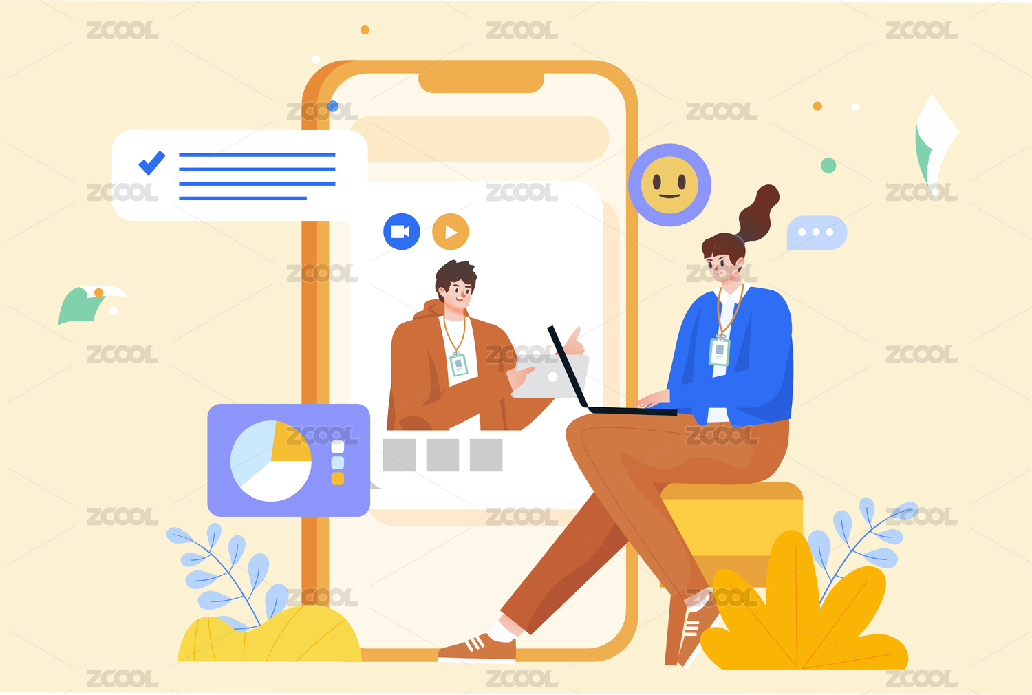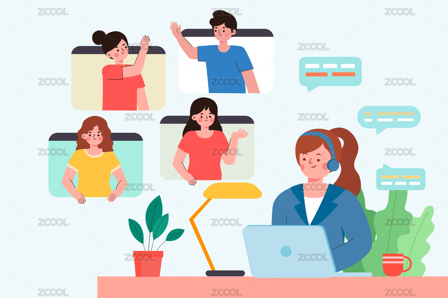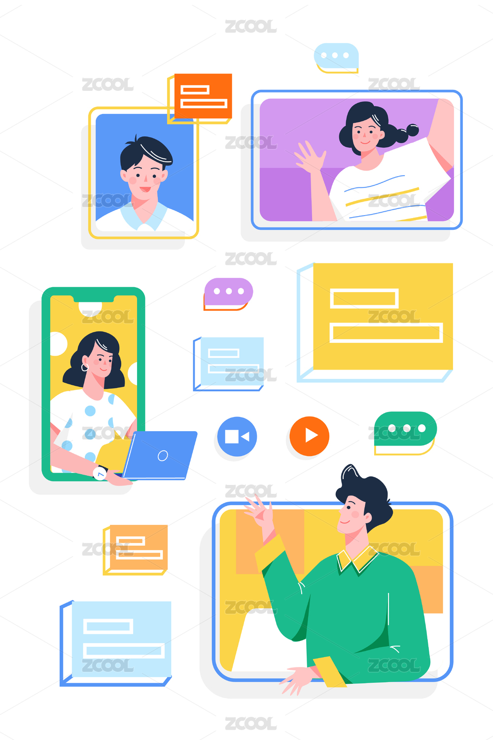 在线视频办公插画
