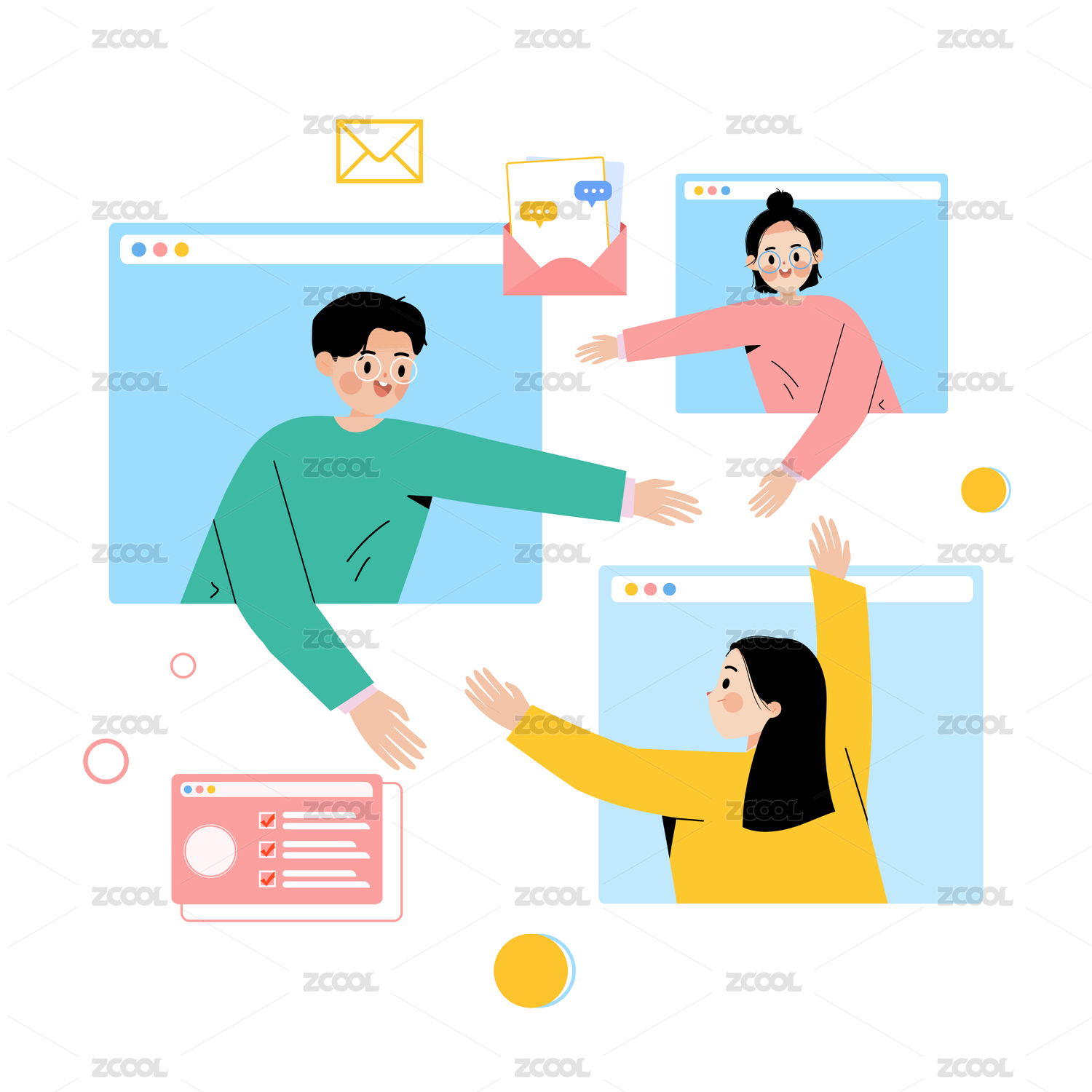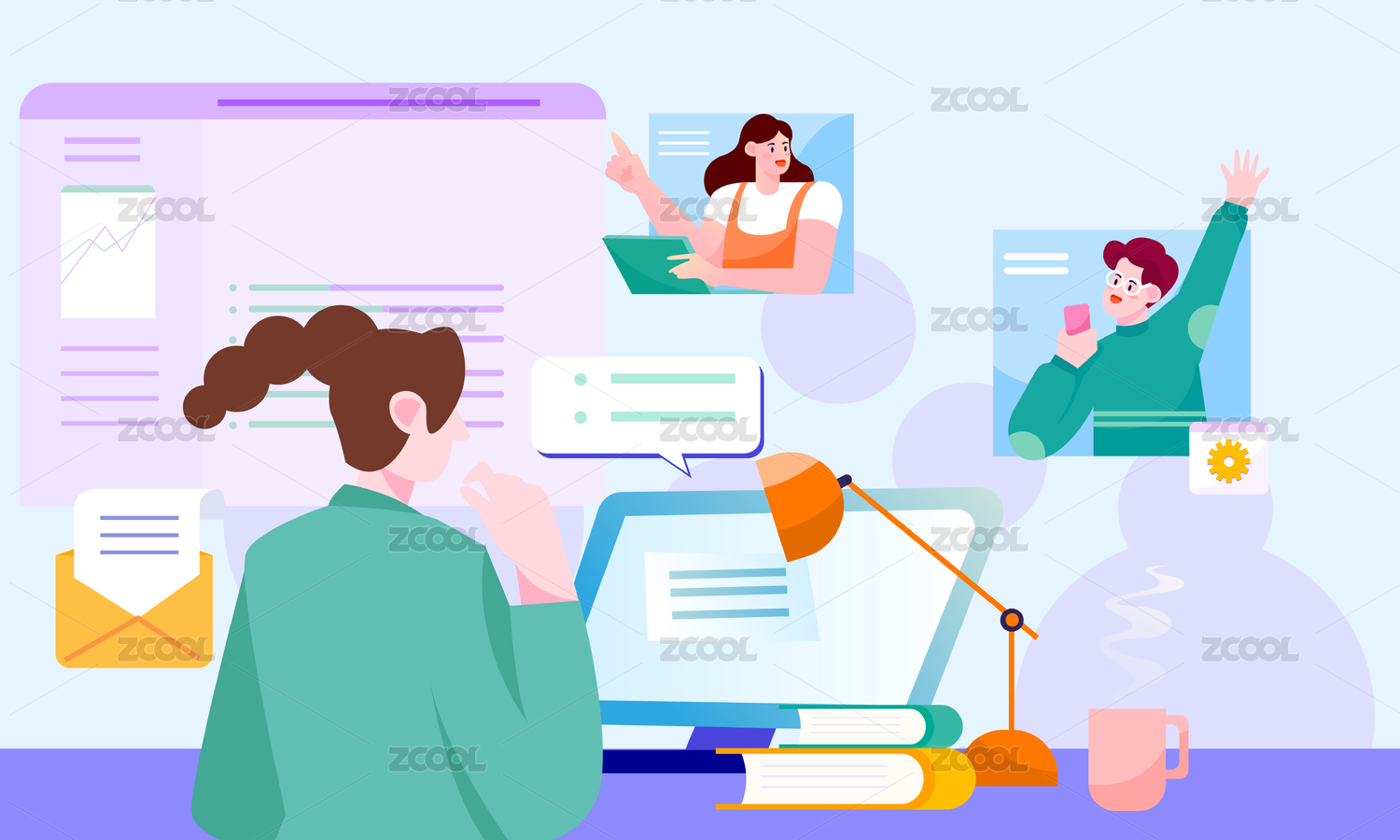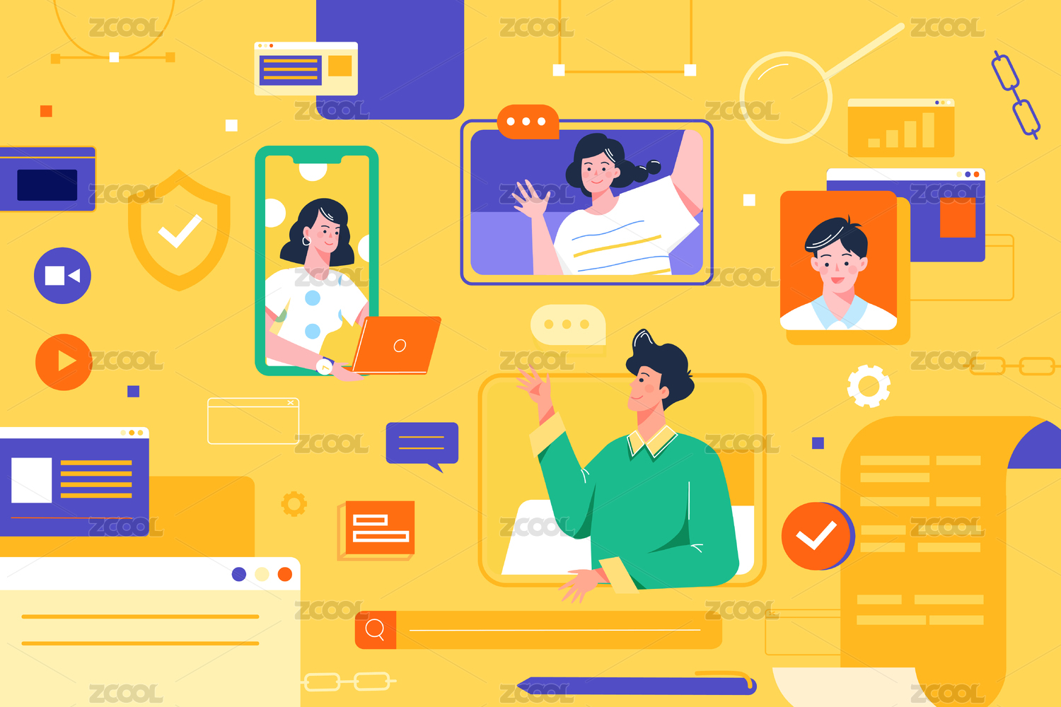 团队合作远程办公卡通插画