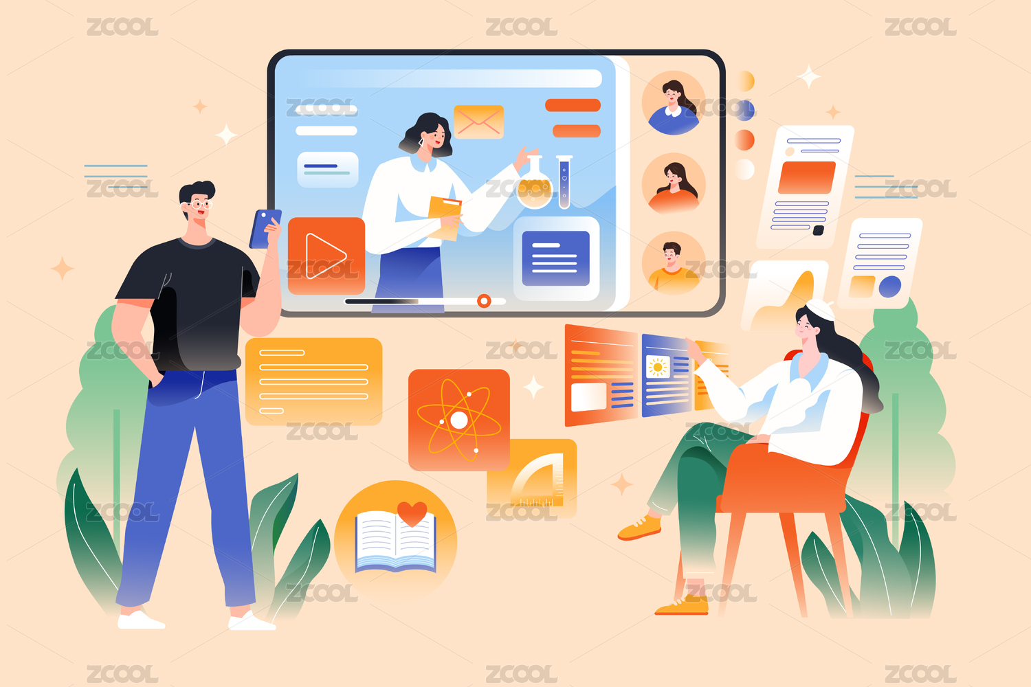 网课教育矢量插画