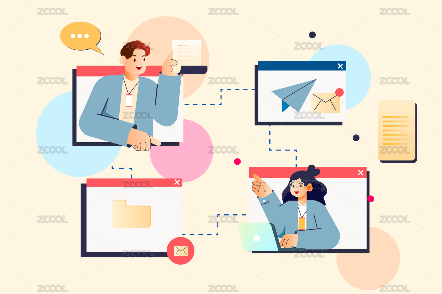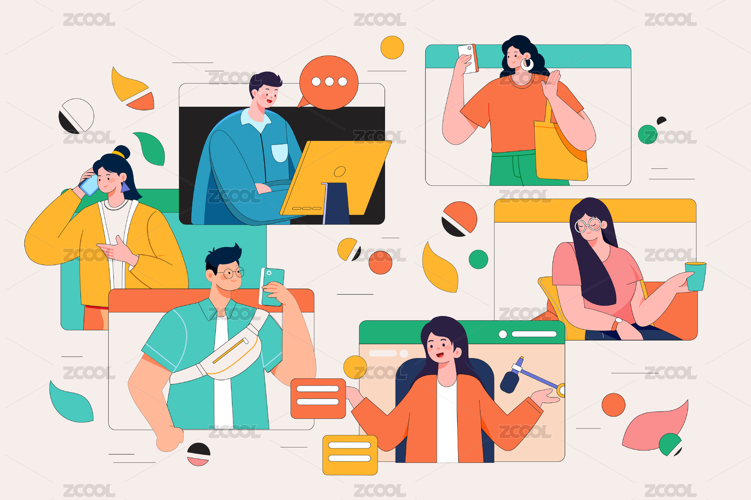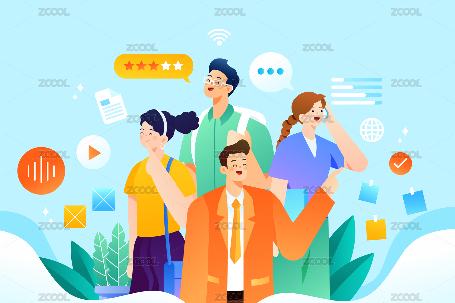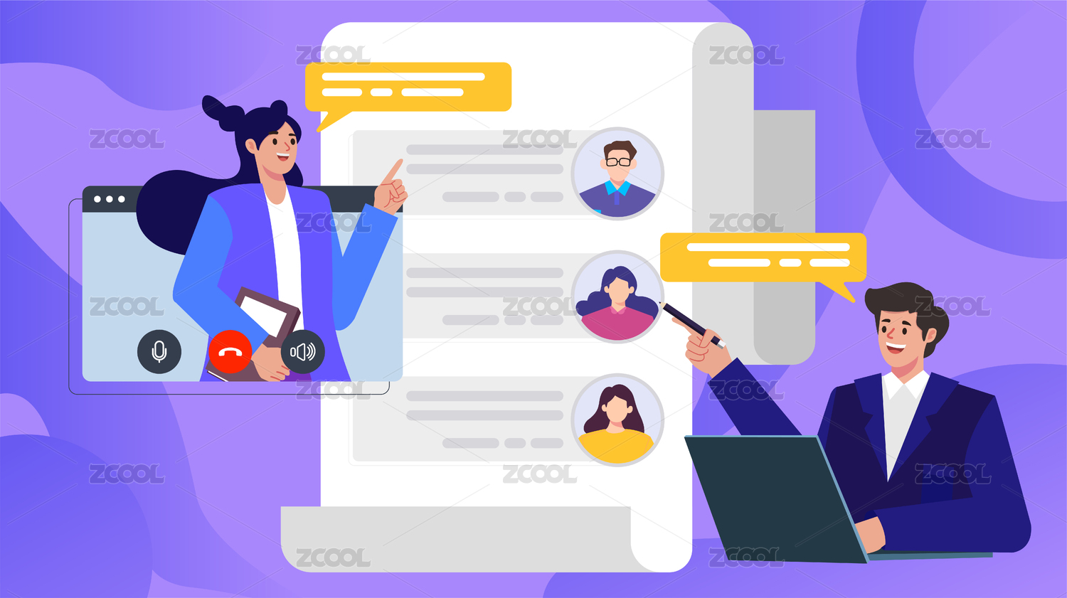 商务办公人物通话交谈沟通对话团队合作插画