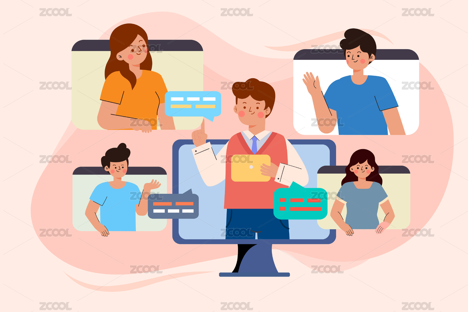 多人网络视频会议矢量插画