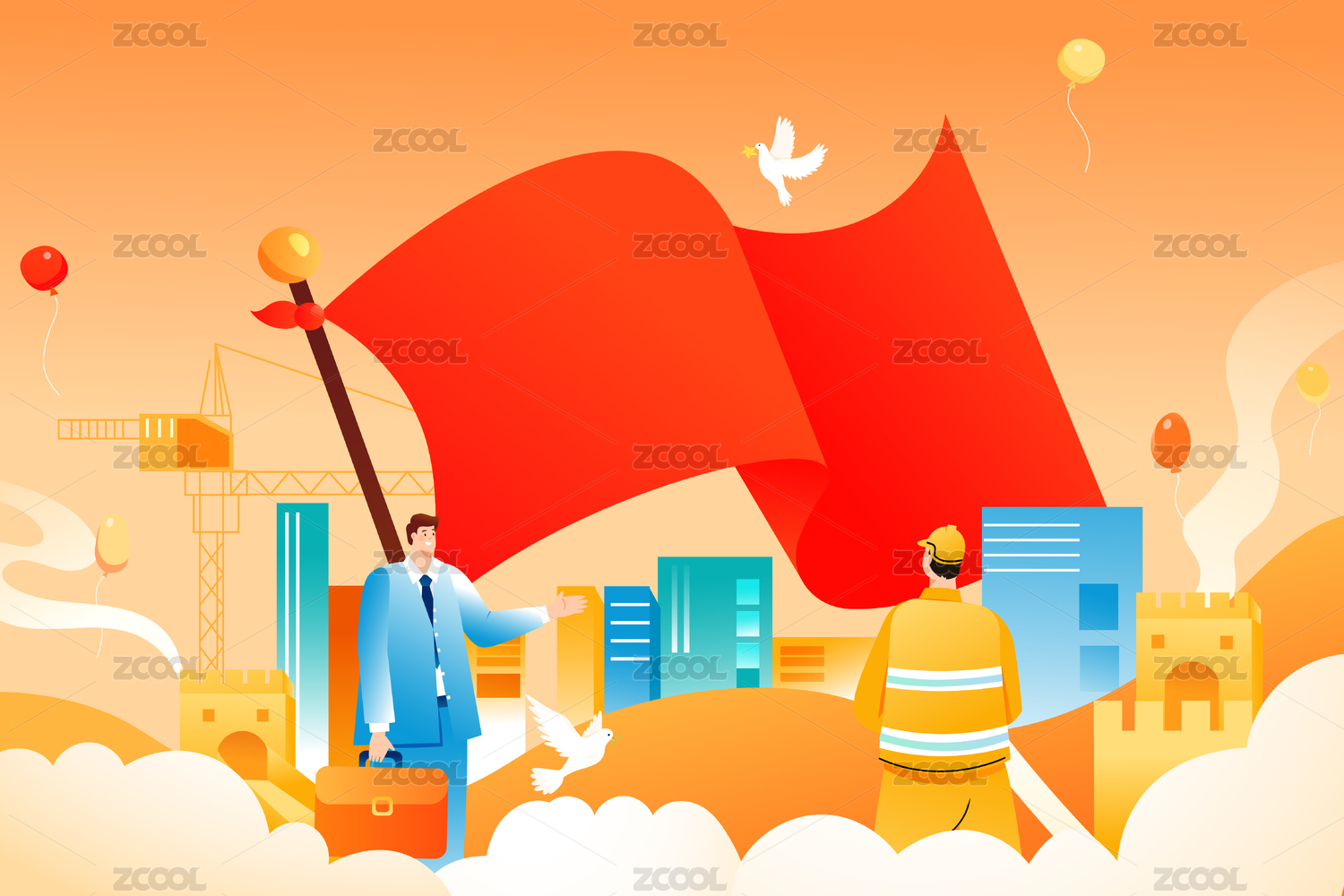 劳动节国庆节矢量插画