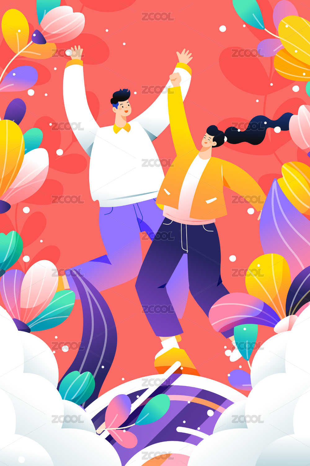 五四青年节青春活泼快乐年轻人跳跃庆祝插画