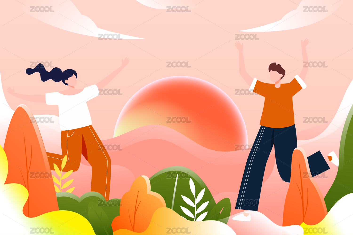 渐变,矢量,扁平,卡通,节日,插画,插图,背景,出游,活动