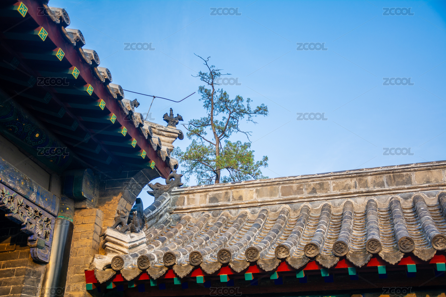 中国古建筑深宅大院孟府屋顶屋檐蓝天