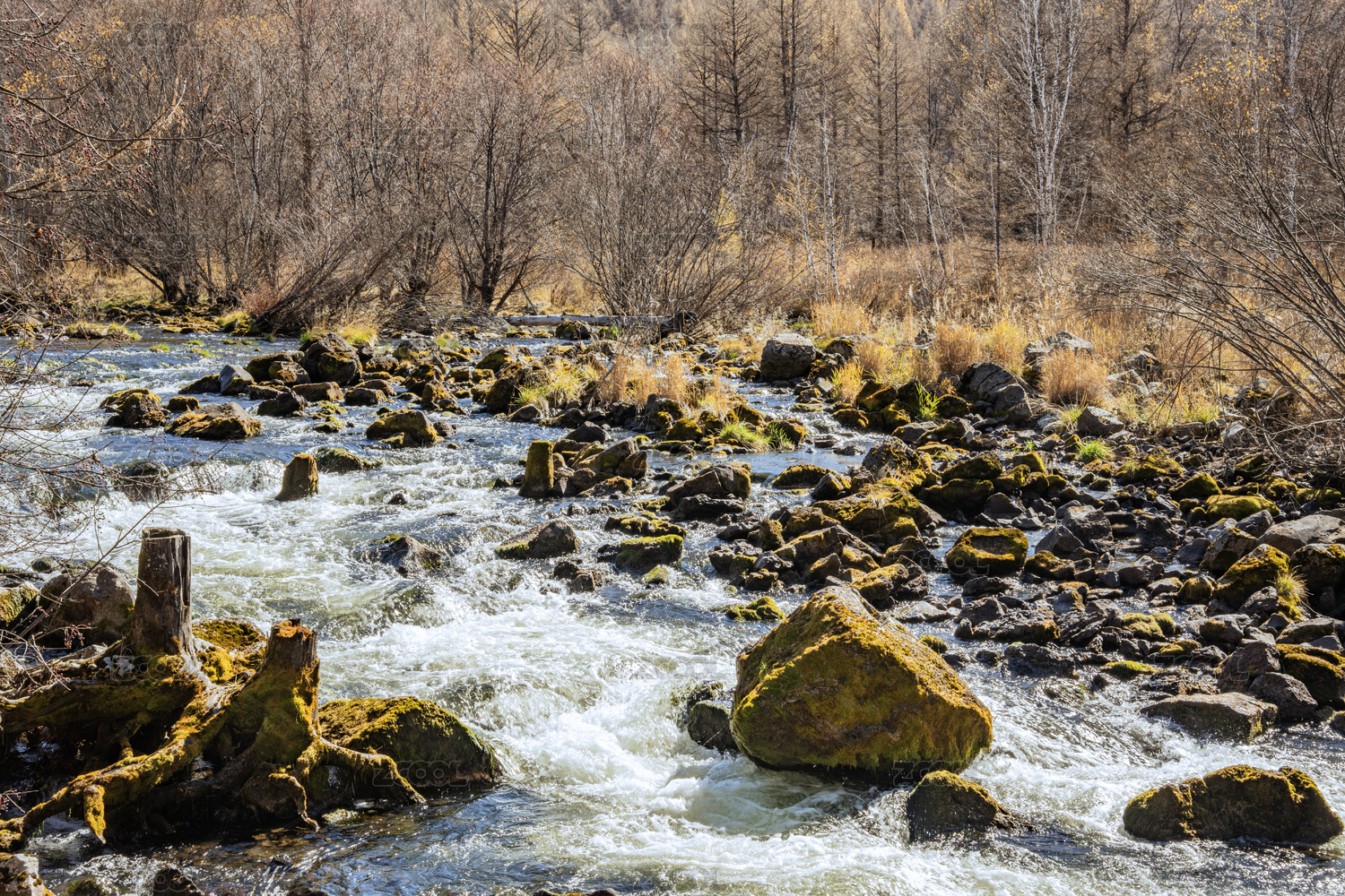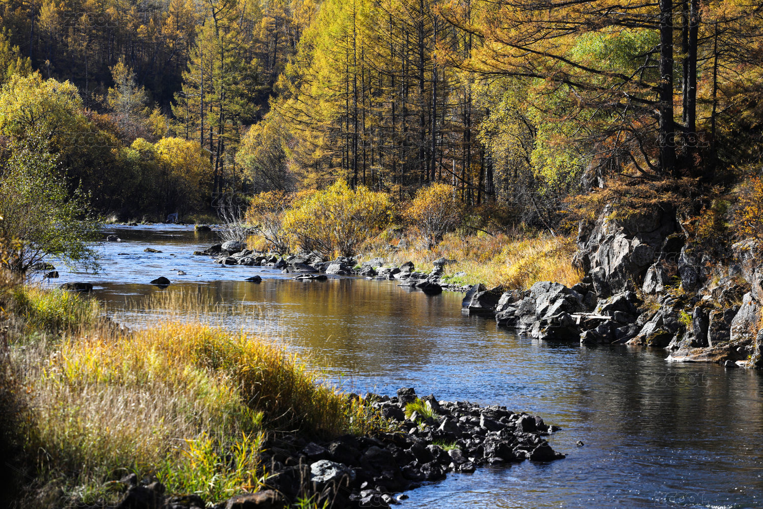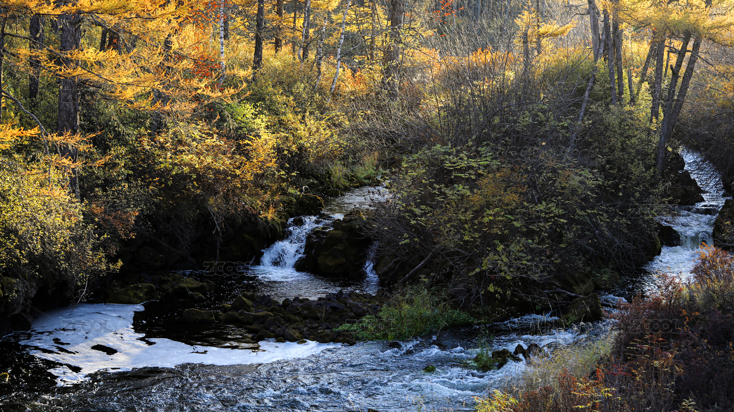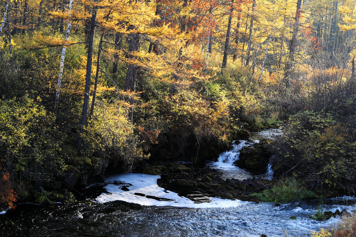 中国内蒙古阿尔山森林国家公园三潭峡秋景