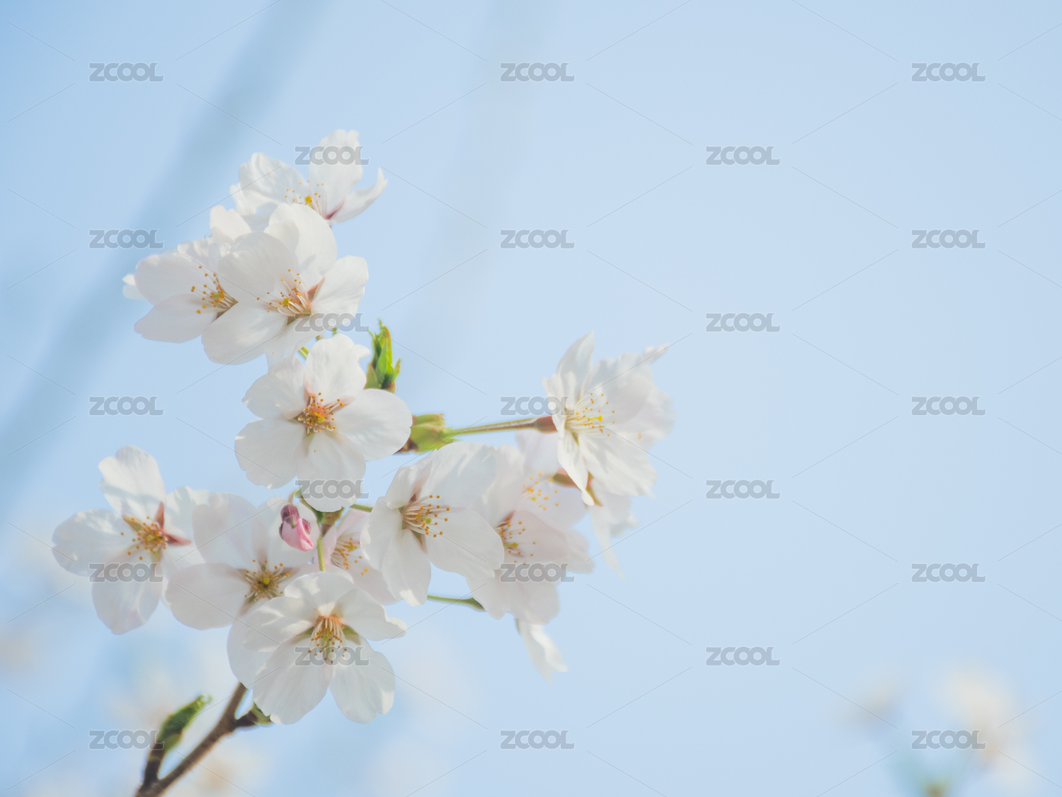 开放在蓝天下的樱花花枝