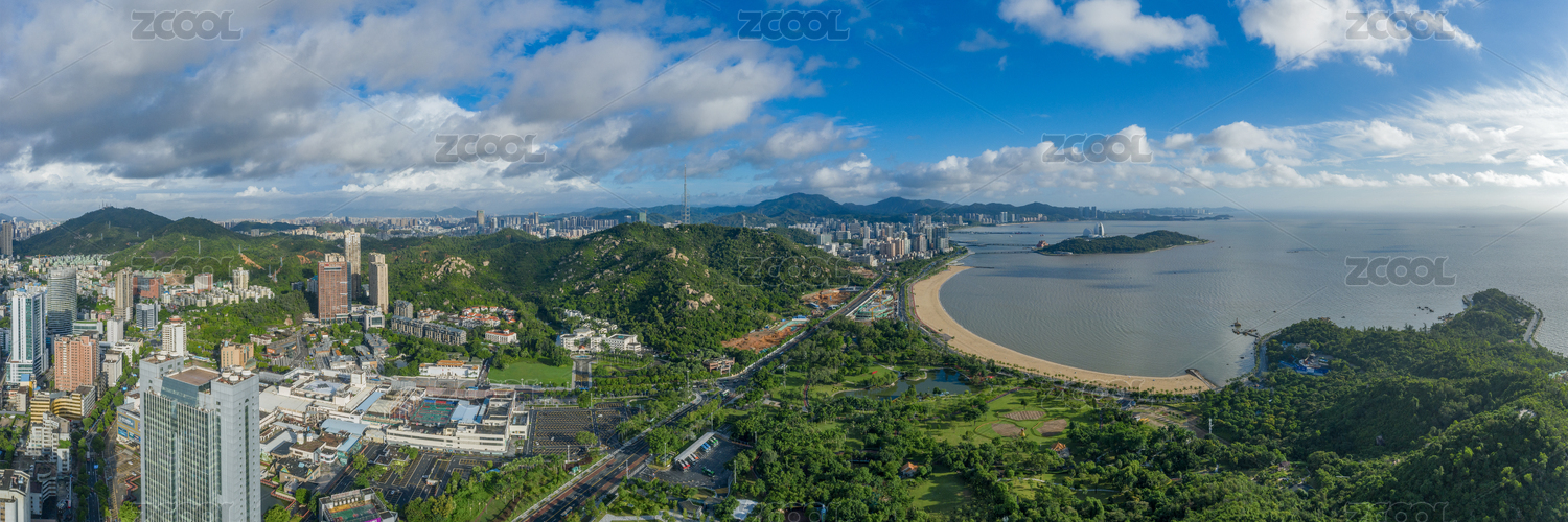航拍中国广东省珠海市香洲区野狸岛公园名亭公园