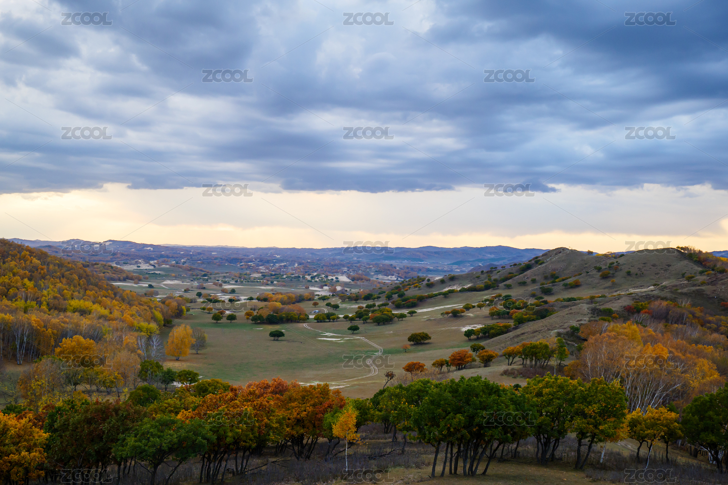 秋天内蒙古赤峰的蛤蟆坝景区的山坡草地树林
